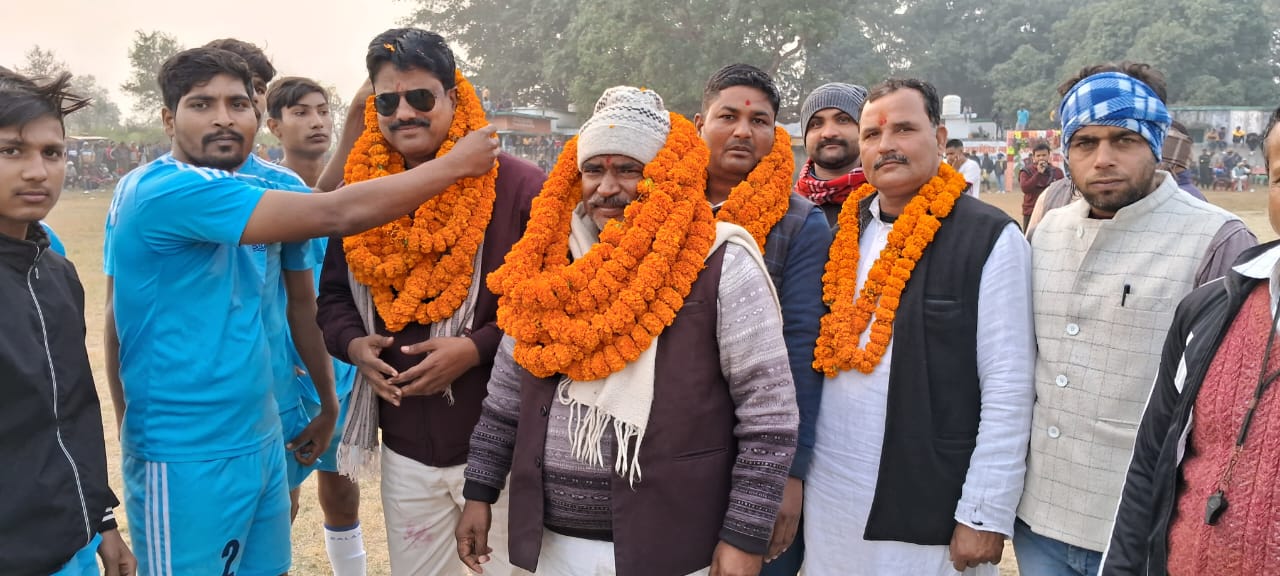 नगर पंचायत तरकुलवा के कनकपुरा मे चल रहे स्वर्गीय दिग्विजय प्रताप कौशिक स्मारक फुटबॉल प्रतियोगिता के बैनर तले कनकपुरा जुनियर हाई स्कूल के प्रांगण में बुधवार को पहला सेमीफाइनल मैच कनकपुरा व सितापट्टी के बीच खेला गया जो काफी रोमांचक रहा। प्रतियोगिता के मुख्य अतिथि तरकुलवा ब्लाक प्रमुख राम आशीष गुप्ता व भाजपा नेता मनोज भारती राजू ने खिलाड़ियों से परिचय प्राप्त कर प्रतियोगिता का शुभारंभ कराया।खिलाड़ियों को संबोधित करते हुए मुख्य अतिथि राम आशीष गुप्ता ने कहा कि खेल कों खेल की भावना से खेलना चाहिए जो खिलाड़ी हारता है।वह जीतता भी है। प्रतियोगिता के पहले मुकाबले के पहले हाफ में शानदार प्रदर्शन के दौरान दोनों टीमों का मुकाबला बहुत ही रोचक रहा। शानदार प्रदर्शन करते हुए दोनों टीमों टीम बराबरी पर रही, पुनः एक बार निर्धारित समय में दोनों टीम को मौका दिया गया जिसमें पेनाल्टी शूट 2/0से सितापट्टी की टीम ने कनकपुरा को सिक्स्त देकर फाइनल में पहुंच गई।वहीं प्रतियोगिता के आयोजक कनकपुरा के पूर्व प्रधान अखिलेश प्रताप कौशिक (मुन्नु बाबु) व नन्हे सिंह ने अतिथियों को अंग वस्त्र स्मृति चिन्ह भेंट कर सम्मानित किया।निर्णायक पूर्व प्रधान नसीर अहमद व कमेंट्री मजीबुल्लाह सिद्दीकी ने किया।इस दौरान वरिष्ठ भाजपा नेता रणधीर सिंह गोलु दुर्गेश तिवारी राजीव प्रसाद पूर्व प्रधान राणा प्रताप सिंह विजय बहादुर देवेश सिंह रफीक अंसारी जयराम राव घनश्याम तिवारी जयंत सिंह कुलदीप सिंह परवेज खान बंटी मिश्रा सलीम खान धर्मेंद्र सैनी सुनील प्रसाद अरविंद राव इब्राहिम अंसारी मैनेजर कुशवाहा आमीर खान मुकेश सिंह रिजवान अंसारी आदी लोग मौजूद रहे।