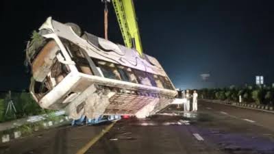 उन्नाव/उत्तर प्रदेश (राष्ट्र की परम्परा डेस्क)। दिल्ली से वाराणसी जा रही एक निजी एसी स्लीपर बस (नं. BR 28 P 9488) बुधवार देर रात भीषण हादसे का शिकार हो गई। यह दर्दनाक घटना आगरा-लखनऊ एक्सप्रेसवे के मटरिया हसनगंज (उन्नाव) इलाके में रात करीब 2:30 बजे हुई, जब बस एक्सप्रेसवे से नीचे उतरकर पलट गई। हादसे में 40 से अधिक यात्री गंभीर रूप से घायल हो गए हैं।