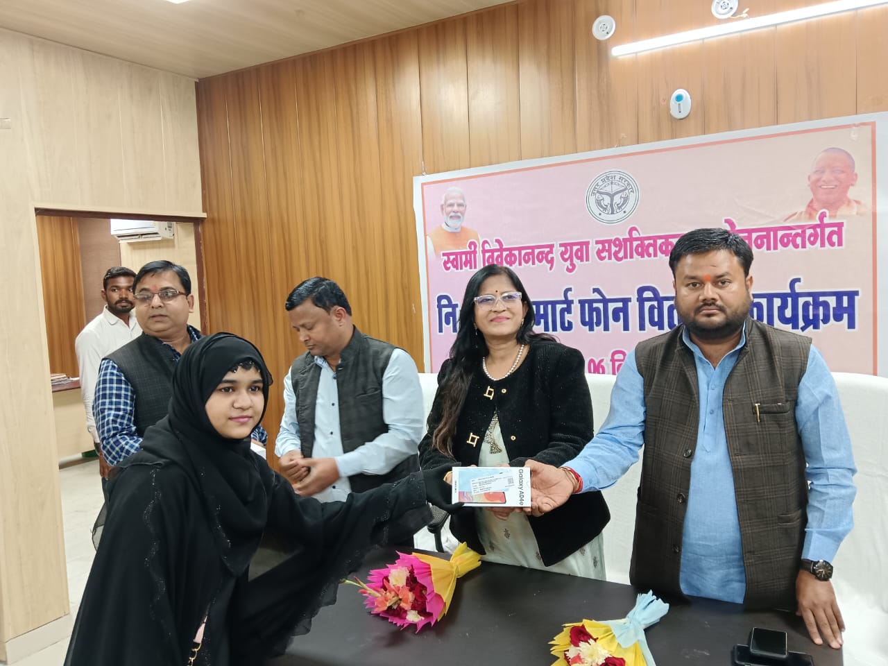 बहराइच (राष्ट्र की परम्परा)। जिला उद्योग केन्द्र बहराइच में आयोजित कार्यक्रम में एम एल सी डॉ प्रज्ञा त्रिपाठी ने भाजपा जिला अध्यक्ष बृजेश पाण्डेय व उपायुक्त उद्योग केशव राम वर्मा के साथ वर्ष 2021-22 अन्तर्गत एक जनपद-एक उत्पाद योजना तथा अनुसूचित जाति एवं अनुसूचित जनजाति सबप्लान योजना अन्तर्गत प्रशिक्षण प्राप्त 69 लाभार्थियों को स्वामी विवेकानन्द युवा सशक्तिकरण योजना के तहत निशुल्क स्मार्ट फोन का वितरण किया गया।