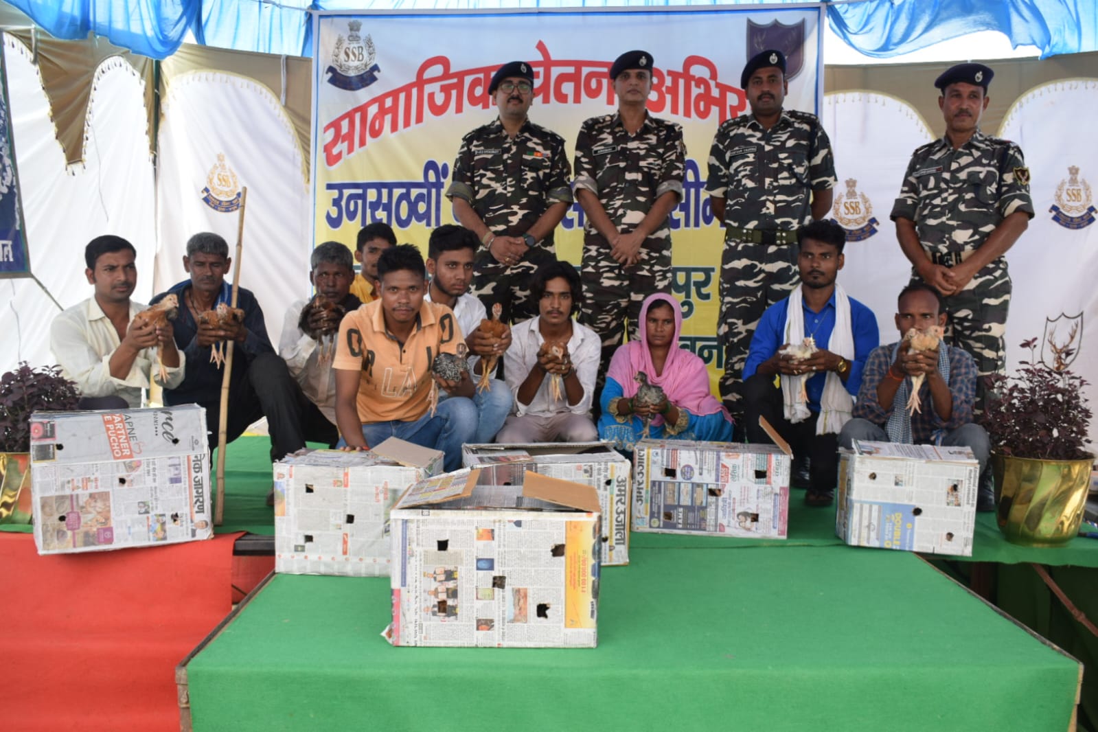 जिसके अंतर्गत सीमावर्ती क्षेत्र के ग्रामीणों को निशुल्क देशी मुर्गी के चूज़े का वितरण किया गया साथ ही मानव चिकित्सा शिविर व पशु चिकित्सा शिविर का आयोजन किया गया।