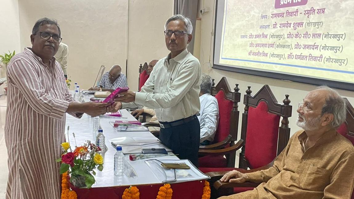 गोरखपुर (राष्ट्र की परम्परा)। दीन दयाल उपाध्याय गोरखपुर विश्वविद्यालय के हिंदी विभाग व केंद्रीय हिंदी निदेशालय, उच्च्चतर शिक्षा विभाग, शिक्षा मंत्रालय, भारत सरकार नई दिल्ली के संयुक्त तत्वावधान में ‘हिंदी भाषा और साहित्य: आलोचना का मूल्य और डॉ. रामचन्द्र तिवारी ‘ विषयक तीन दिवसीय राष्ट्रीय संगोष्ठी का प्रथम तकनीकी सत्र विषय ‘ रामचंद्र तिवारी स्मृति ‘ पर केंद्रित रहा। इस सत्र की अध्यक्षता प्रो. रामदेव शुक्ल ने किया। उन्होंने अपने संबोधन में कहा कि रामचंद्र तिवारी एक पूर्ण शिक्षक थे। उनके अध्यापन का विशेष पक्ष यह था कि वह सोचते हुए अध्यापन करते थे इस पद्धति की विशेषता यह है कि कई बार हम अपने ही पढ़ाए हुए विषय को जब दोबारा पढ़ाते हैं। तो उसमें नई व्यंजना की तलाश होती है। तिवारी जी की प्रेरणा से मुझे इस पद्धति का लाभ सदैव मिला।