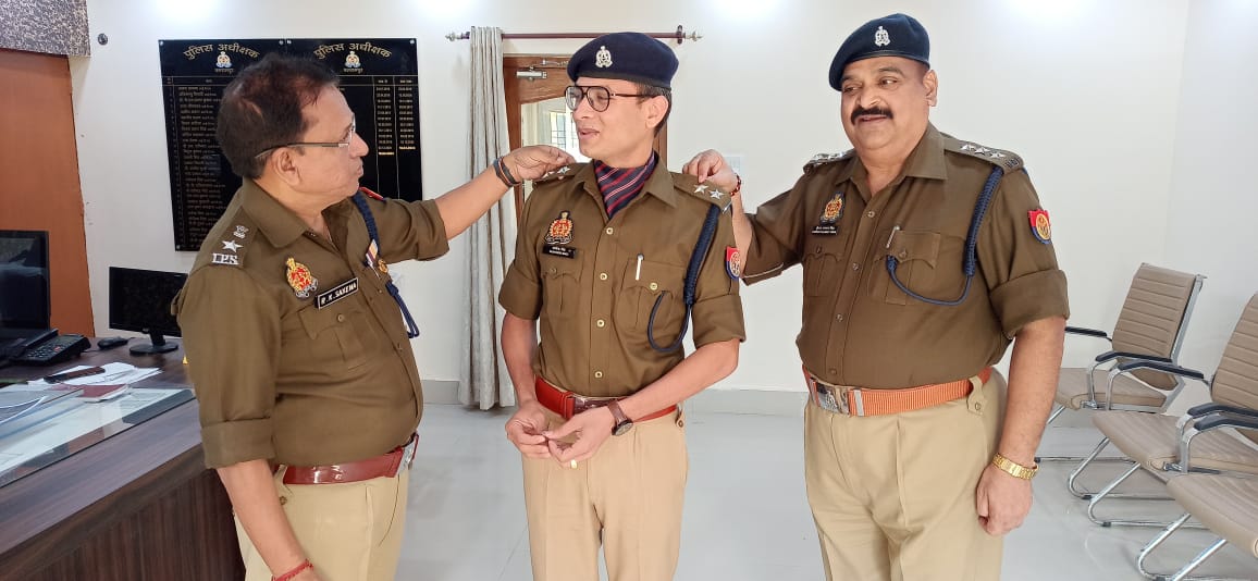 बलरामपुर(राष्ट्र की परम्परा)।प्रशिक्षणाधीन पुलिस उपाधीक्षक का व्यवहारिक प्रशीक्षण पूर्ण होने पर पुलिस आधीक्षक बलरामपुर द्वारा कंधे पर स्टार लगाकर बधाई दी गयी व उज्जवल भविष्य की कामना की गयी ।