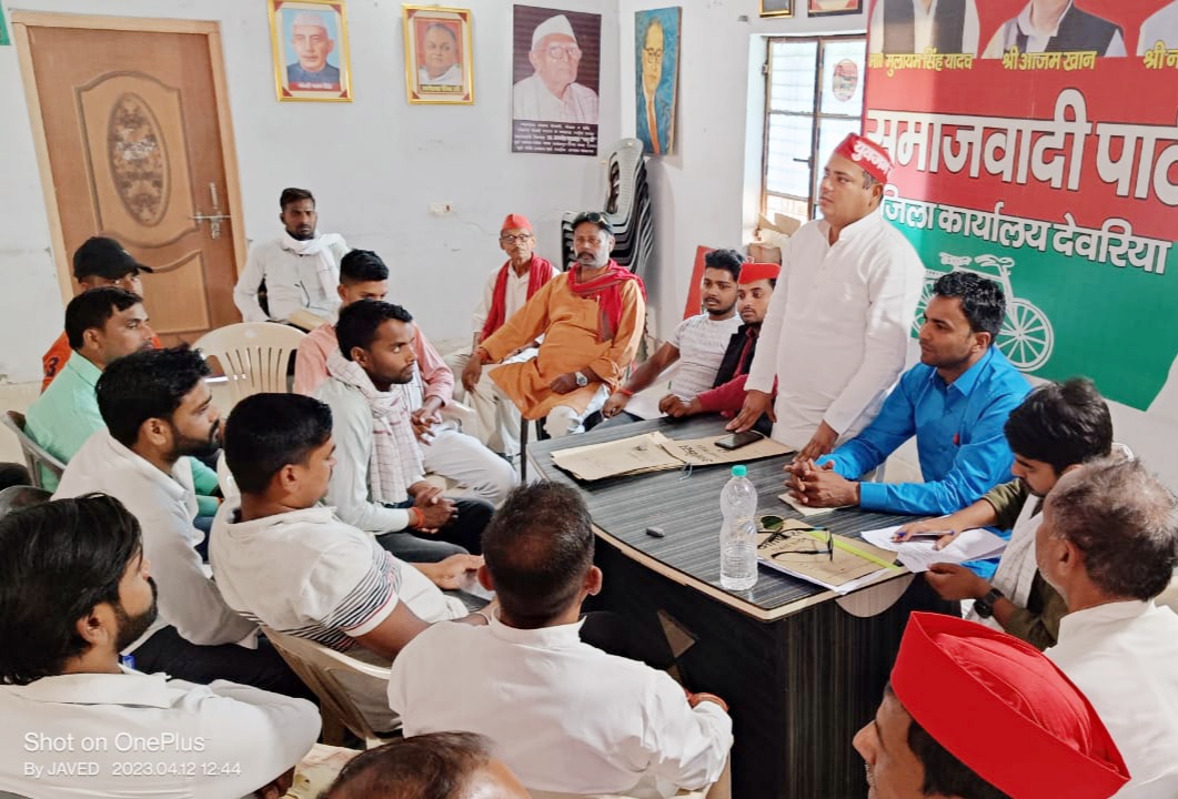 देवरिया(राष्ट्र की परम्परा) समाजवादी युवजन सभा के कार्यकर्ताओं ने संगठन के निर्वतमान जिलाध्यक्ष रणवीर यादव के नेतृत्व में, समाजवादी पार्टी के बसियवा कार्यालय में बैठक कर नगर निकाय चुनाव मजबूती से लड़ने एवं चुनाव में जीत हासिल करने की रणनीति तैयार की गयी। बैठक को संबोधित करते हुए सयुस के निर्वतमान जिलाध्यक्ष रणवीर यादव ने कहा कि, सपा पूरे जनपद की सभी नगर पालिका एवं नगर पंचायतों में होने वाले निकाय चुनाव को मजबूती से लड़ेगी। नगर निकाय चुनावों में सपा जनपद की सभी सीटों पर बड़ी जीत दर्ज करेगी। प्रदेश की जनता भाजपा सरकार से तंग आ कर नगर निकाय चुनाव में सपा को भारी बहुमत से जीत दिलाने का कार्य करेंगी। आम जनता का भाजपा सरकार से मोह भंग हो चुका है। भाजपा सरकार में महँगाई आसमान छू रही है, भाजपा सरकार में बेतहाशा बढ़ रही महंगाई से जनता त्रस्त हो चुकी है, देश व प्रदेश की डबल इंजन सरकार में बेरोजगारी चरम सीमा पर पहुच चुकी है। सरकार के पास बेरोजगार युवाओं के रोजगार की कोई कार्य योजना नही है। सभी तहसील व थानों में भ्र्ष्टाचार चरम पर है। प्रदेश में कानून व्यवस्था ध्वस्त हो चुकी हैं, आये दिन हत्याओ, बालात्कार, लूट, छेड़खानी, आदि की घटनाओं की बाढ़ आ चुकी है। महिलाएं सुरक्षित नही है,महिलाओं पर अत्याचार बढ़ गए है। भाजपा सरकार में किसानों की सुधी लेने वाला कोई नही है,भाजपा सरकार को जनता की समस्याओं से कोई लेना देना नही है। नगर निकाय चुनाव में जनता भाजपा को सबक सिखायेगी। बैठक को संबोधित करने वालो में लोहिया वाहिनी के जिलाध्यक्ष कैलाशपति सिंह सैथवार, जावेद अंसारी, शिवनाथ, विराट, नवनीत शर्मा, अजय यादव, नीरज विश्वकर्मा, हरिकेश, अखिलेश, नरसिंह यादव, बिशु सिंह अकेला, सतुरधन कुमार, वीर सिंह, सत्यप्रकाश, संतोष यादव, देवेंद्र भारती, आदि उपस्थित रहे।