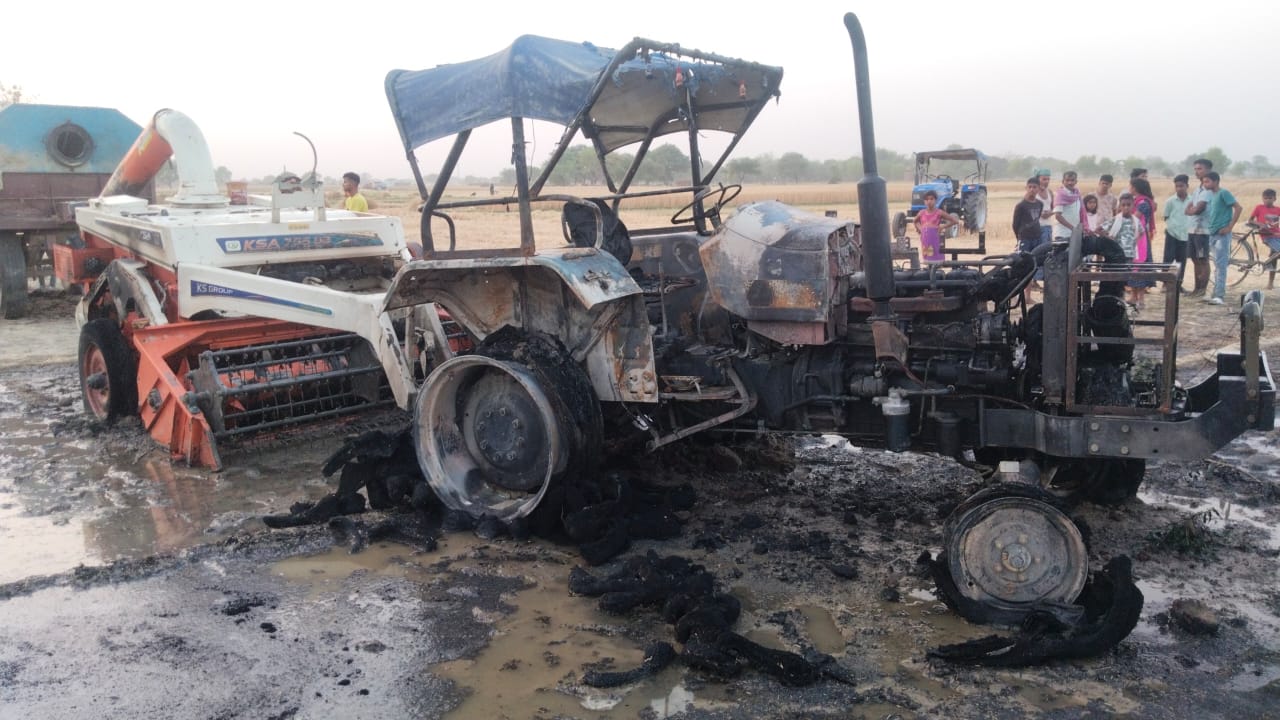 भूसा मशीन से निकली चिंगारी, दर्जनों बीघा गेहूं की फसल खाक
