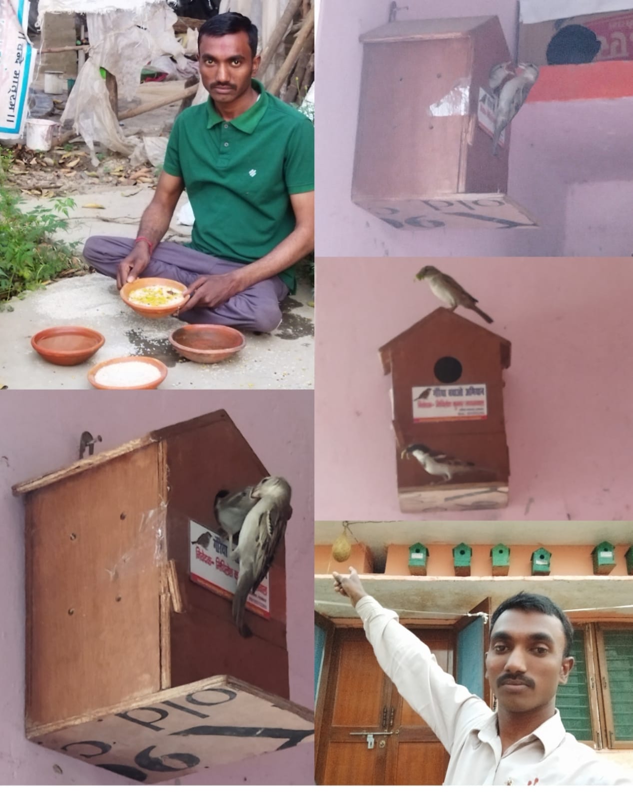 गौरैया के खाने पीने से लेकर उसे घर तक उपलब्ध करा रहे मिथिलेश