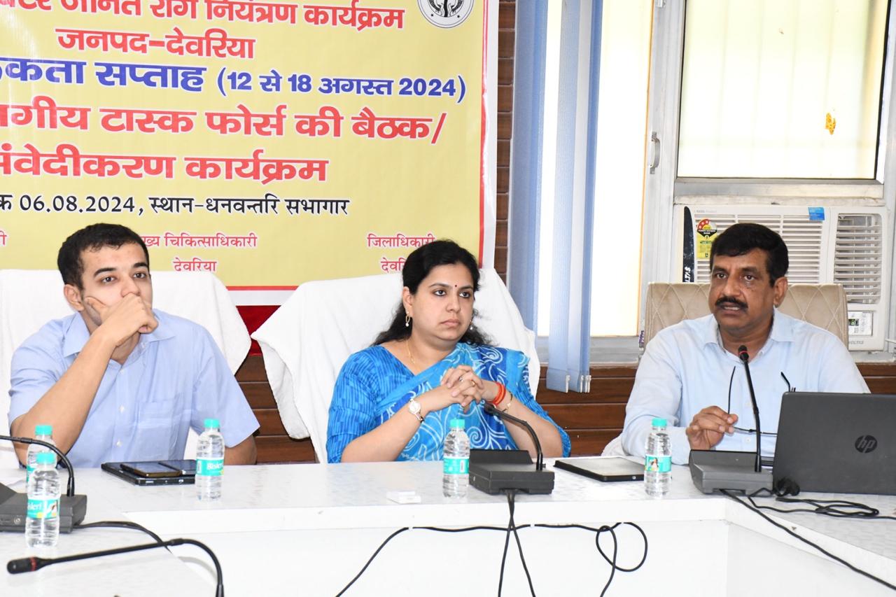 देवरिया (राष्ट्र की परम्परा)। राष्ट्रीय वेक्टर जनित रोग नियंत्रण कार्यक्रम के तहत डेंगू जागरूकता सप्ताह के लिए सीएमओ कार्यालय के धन्वंतरि सभागार में मंगलवार को अंतर्विभागीय टास्क फोर्स की बैठक हुई । बैठक की अध्यक्षता जिलाधिकारी दिव्या मित्तल ने की। इस दौरान 12 से 18 अगस्त तक मनाये जाने वाले डेंगू जागरूकता सप्ताह के लिए कार्ययोजना बनाई गई। डीएम ने सभी सीएचसी व पीएचसी के माध्यम से लोगों को जागरूक करने का निर्देश दिया।