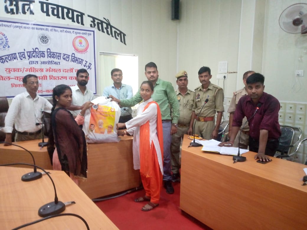 उतरौला/बलरामपुर(राष्ट्र की परम्परा) सोमवार को युवा कल्याण एवं प्रान्तीय रक्षक दल विभाग द्वारा ब्लॉक सभागार में ब्लाक प्रमुख प्रतिनिधि महिपाल चौधरी, एडीओ आई एस बी के अध्यक्षता में युवक एवं महिला मंगल दलों को खेल-कुद प्रोत्साहन समाग्री वितरित किया गया। खेल-कूद वितरण कार्यक्रम में उतरौला ब्लाक के 7 युवक एवं 7 महिला मंगल दलों में श्रीदत्तगंज ब्लाक के 9 युवक और 7 महिला मंगल दलों को खेल-कूद किट प्रदान किया गया। खेल-कूद किट प्रदान करने के उपरान्त ब्लाक प्रमुख प्रतिनिधि महिपाल चौधरी ने युवक व महिला मंगल दलों को सम्बोधित करते हुए कहा कि विकास खण्ड के प्रत्येक ग्राम पंचायत में खेल मैदान बनाने की प्रक्रिया तेजी से चल रहा है। खेल-मैदान बनने के बाद इस मैदान का संचालन युवक व महिला मंगल दल द्वारा किया जायेगा। युवक व महिला मंगल दलों का मुख्य कार्य ग्राम पंचायत में खेल-कूद को प्रोत्साहित करने के साथ सरकारी योजनाओ का प्रचार-प्रसार करना होता है। उतरौला विकास खण्ड के प्रभारी मनवीर, श्रीदत्तगंज