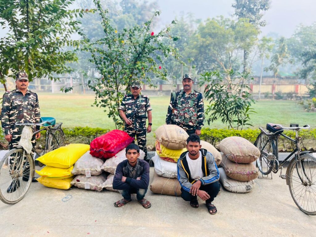 बताया जाता है कि पड़ोसी मुल्क नेपाल में उपरोक्त समान महंगी होने के वजह से सीमावर्ती क्षेत्रों से इन दिनो प्रतिबंधित प्याज, खाद व चावल की व्यापक पैमाने पर नेपाल को तस्करी हो रही है। बरगदवा एसएसबी बीओपी इंचार्ज अजीत तालुकदार मय एसएसबी टीम ने पेट्रोलिंग के दौरान सीमा के पिलर संख्या 509 के समीप से प्रतिबंधित प्याज 5 बोरी, चावल 10 बोरी, 3 बोरी खाद, दो साइकिल समेत दो युवक कैलाश पुत्र भगवान, नरेंद्र रौनियार पुत्र विनोद निवासी देवघट्टी को गिरफ्तार किया है। जिसके विरुद्ध अग्रिम विधिक कार्रवाई हेतु कस्टम विभाग को सुपुर्द कर दिया है।
