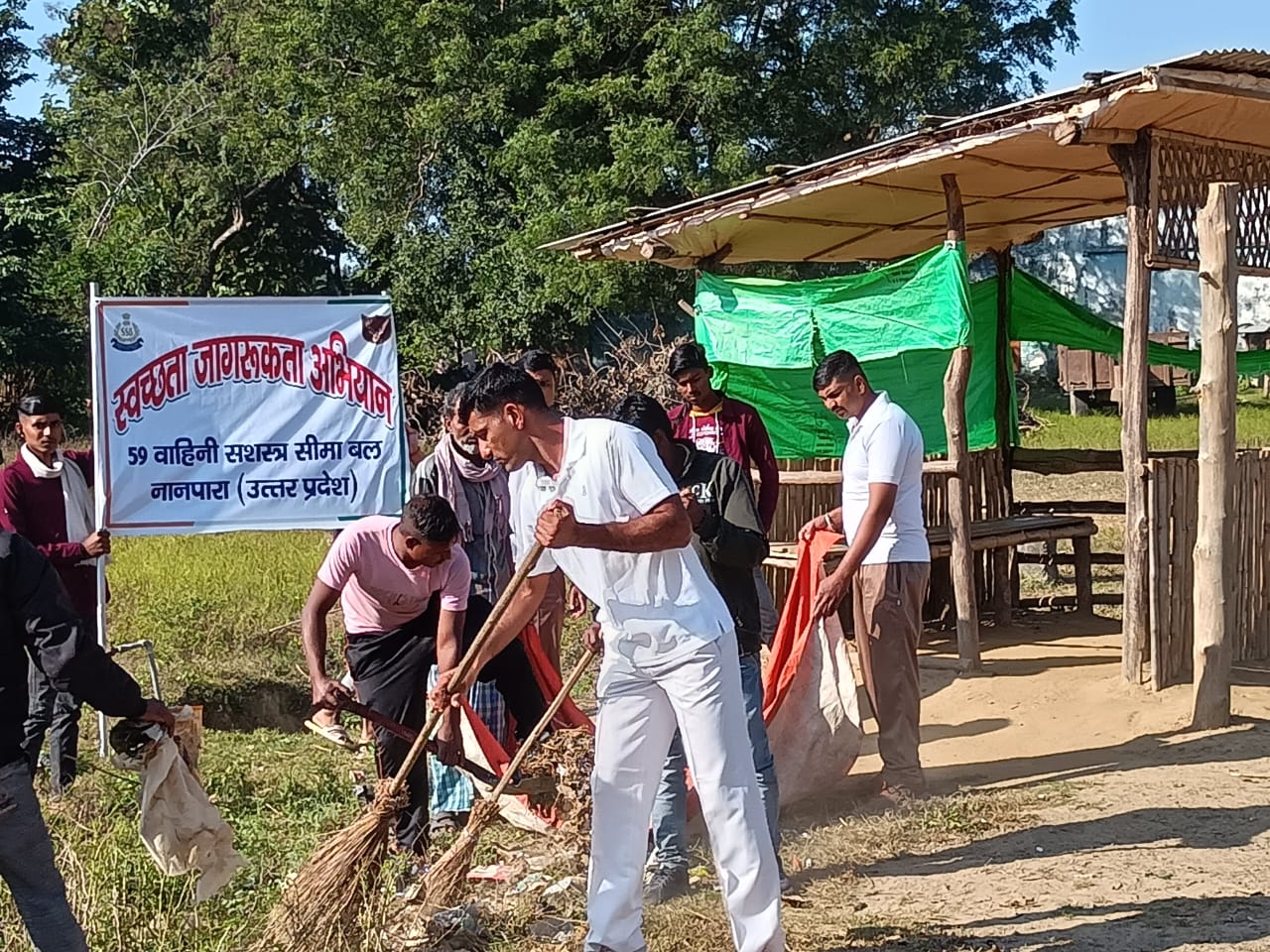 बहराइच (राष्ट्र की परम्परा) । स्वच्छता अभियान पर 59 वाहिनी सशस्त्र सीमा बल नानपारा व अधीनस्थ सीमा चौकियों में स्वच्छता पखवाड़ा थीम के अन्तर्गत स्वच्छता अभियान का आयोजन किया गया,जिसमे वाहिनी के समस्त अधिकारी एवं बल कार्मिको ने बढ़ चढ़ कर भाग लिया और सीमावर्ती क्षेत्र के ग्रामीणों को साफ सफाई से रहने का सन्देश दिया एवं बताया गया की प्रतिदिन दो घन्टे श्रमदान करने के लिए लोगो को जन संदेश दिया ओर स्वच्छ भारत बनाने पर संदेश पर प्रेरित किया।