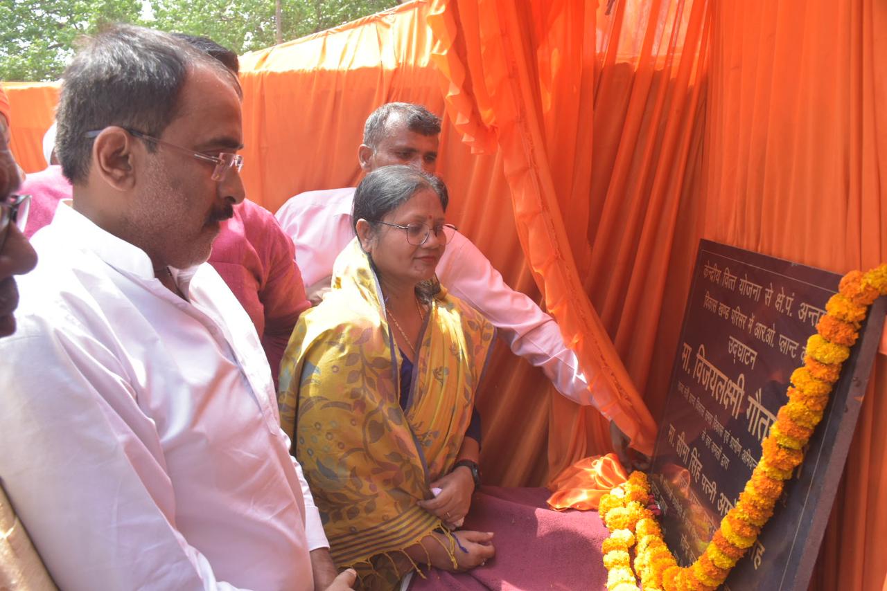सलेमपुर/देवरिया(राष्ट्र की परम्परा) सलेमपुर के गांधी चौक पर राज्यमंत्री विजयलक्ष्मी गौतम द्वारा गांधी चौक से रेलवे स्टेशन होते हुए हॉस्पिटल तक सड़क नवीनीकरण कार्य का उद्घाटन किया गया।भाजपा नेता अमित कुमार सिट्टू ने राज्यमंत्री को चांदी का मुकुट और पुष्प भेंट कर सम्मानित किया।राज्यमंत्री विजयलक्ष्मी गौतम ने कहा कि भाजपा की प्रदेश केंद्र सरकार सड़कों का जाल बिछाकर सरकार ने ऐतिहासिक कीर्तिमान स्थापित किया है।इसके बाद राज्य मंत्री विजय लक्ष्मी गौतम ने सलेमपुर ब्लॉक के परिसर में आरओ प्लांट का उद्घाटन किया इस दौरान ब्लाक प्रमुख प्रतिनिधि अमरेश सिंह बबलू ने सभी के प्रति आभार व्यक्त किया।उक्त अवसर पर त्रिपुणायक विश्वकर्मा, सम्पूर्णानन्द गुप्ता,बृजेश उपाध्याय,अजय दूबे वत्स,रविशंकर मिश्र,उमाकान्त मिश्र,रामेश्वर सिंह,विनोद ठठेरा,लल्लन सिंह,प्रकाश पाण्डेय, नागेन्द्र गुप्ता,अन्नू सिंह,अंकित मिश्र,बीडीओ आनन्द प्रकाश,अनिल कुमार चौबे,राकेश यादव,रामआशीष,मनोज यादव,नरेंद्र तिवारी,सौरभ तिवारी,अदिति दूबे आदि मौजूद रहे।