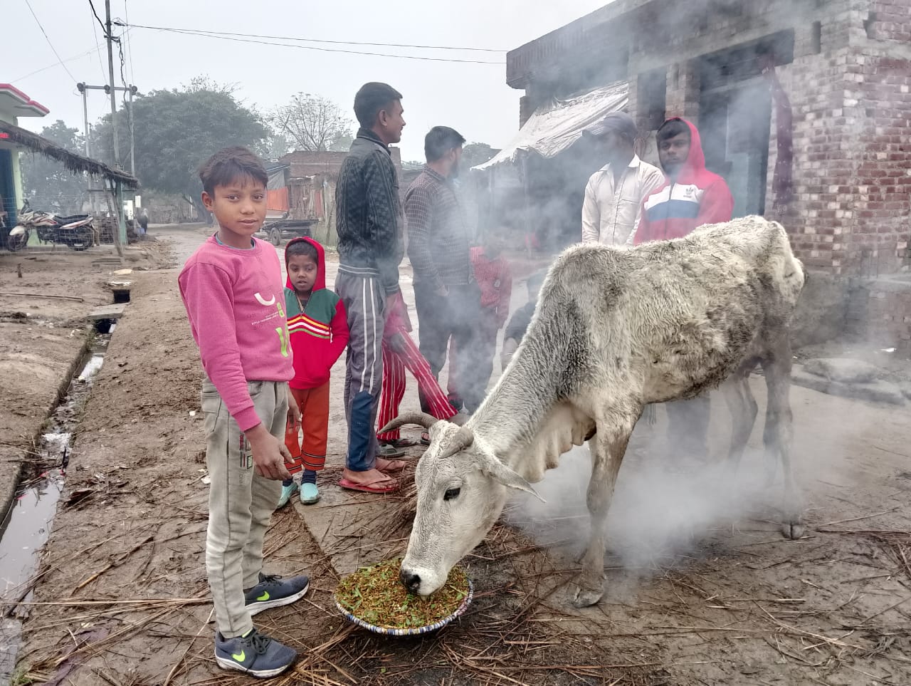 गढ़िया रंगीन क्षेत्र ग्राम पंचायत रपड़िया में कड़ाके की ठंड के चलते आवारा गोवंश की हालत चिंताजनक बनी हुई है। क्षेत्र में गौशाला की समुचित व्यवस्था न होने के कारण गोवंश खुले आसमान के नीचे सड़कों और खेतों में ठिठुरने को मजबूर हैं। हालात को देखते हुए ग्रामीण विपिन श्रीवास्तव और रविंद्र श्रीवास्तव ने मानवीय पहल करते हुए गोवंश के लिए अलाव जलाया तथा चारा खिलाकर उनकी देखभाल की।