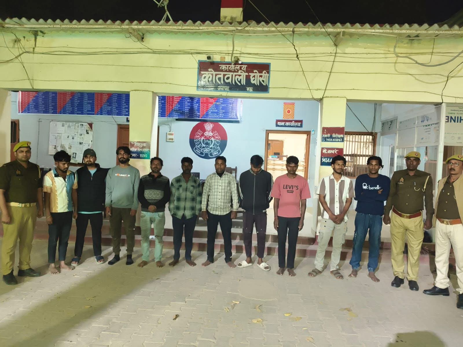 घोसी (राष्ट्र की परम्परा)। जनपद मऊ में सार्वजनिक स्थानों पर शराब पीने और नशे में उत्पात मचाने वालों के खिलाफ पुलिस ने सख्त अभियान शुरू कर दिया है। लगातार मिल रही शिकायतों के बाद घोसी थाना क्षेत्र में विशेष चेकिंग अभियान चलाया गया।