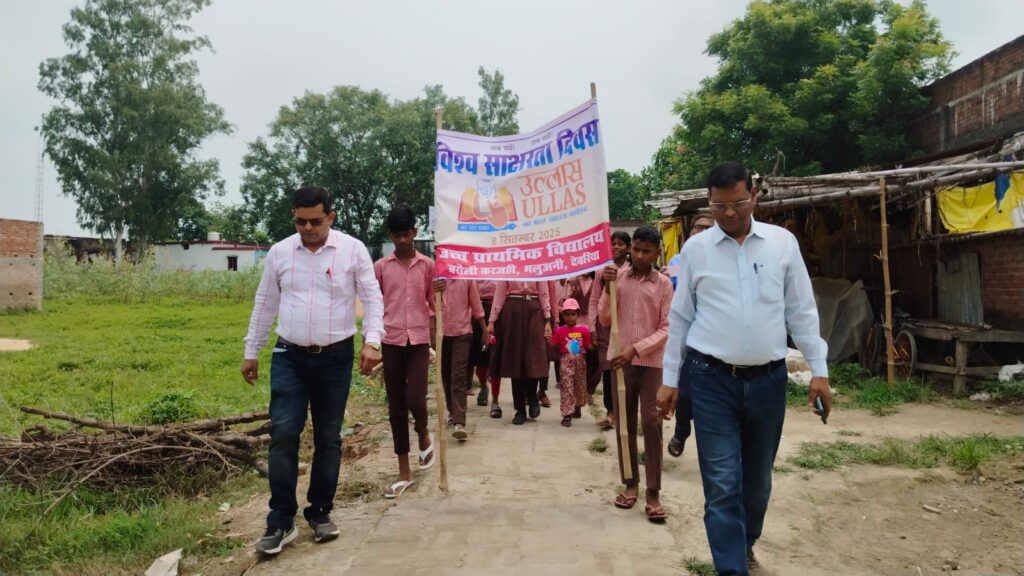 बरहज/देवरिया (राष्ट्र की परम्परा)। विश्व साक्षरता दिवस के अवसर पर कंपोजिट विद्यालय बरौली करजही विकास खंड भलुवनी में सोमवार को विश्व साक्षरता दिवस का आयोजन किया गया। शिक्षकों, छात्रों ने जागरूकता रैली निकाली। रैली का शुभारंभ बीईओ सत्यप्रकाश कुशवाहा ने किया। शिक्षकों, बच्चों की रैली गांव में जाकर अभिभावकों को शिक्षा के प्रति प्रेरित किया। छात्रों के बीच स्लोगन प्रतियोगिता आयोजित की गई । खंड शिक्षा अधिकारी सत्यप्रकाश कुशवाहा ने कहा कि शिक्षा जहां होती है वहां विकास, सुख, समृद्धि और उन्नति होती है। शिक्षा आपके अधिकारों से अवगत कराती है, आपको आपका शोषण होने से बचाती है, शिक्षा पल-पल आपका साथ निभाती है। प्रभारी प्रधानाध्यापक संजय गुप्ता ने साक्षरता के महत्व पर प्रकाश डालते हुए कहा कि साक्षरता शिक्षा की शुरुआत और ज्ञान की राह पर चलाने वाला माध्यम है। रैली बरौली चौराहा होते हुए गांव में भ्रमण की। इस दौरान संदीप कुमार, अर्चना यादव, दिनेश सिंह, धर्मेंद्र प्रजापति,सविनय यादव,संगीता यादव, अमिता देवी,शांति देवी मौजूद रहे।