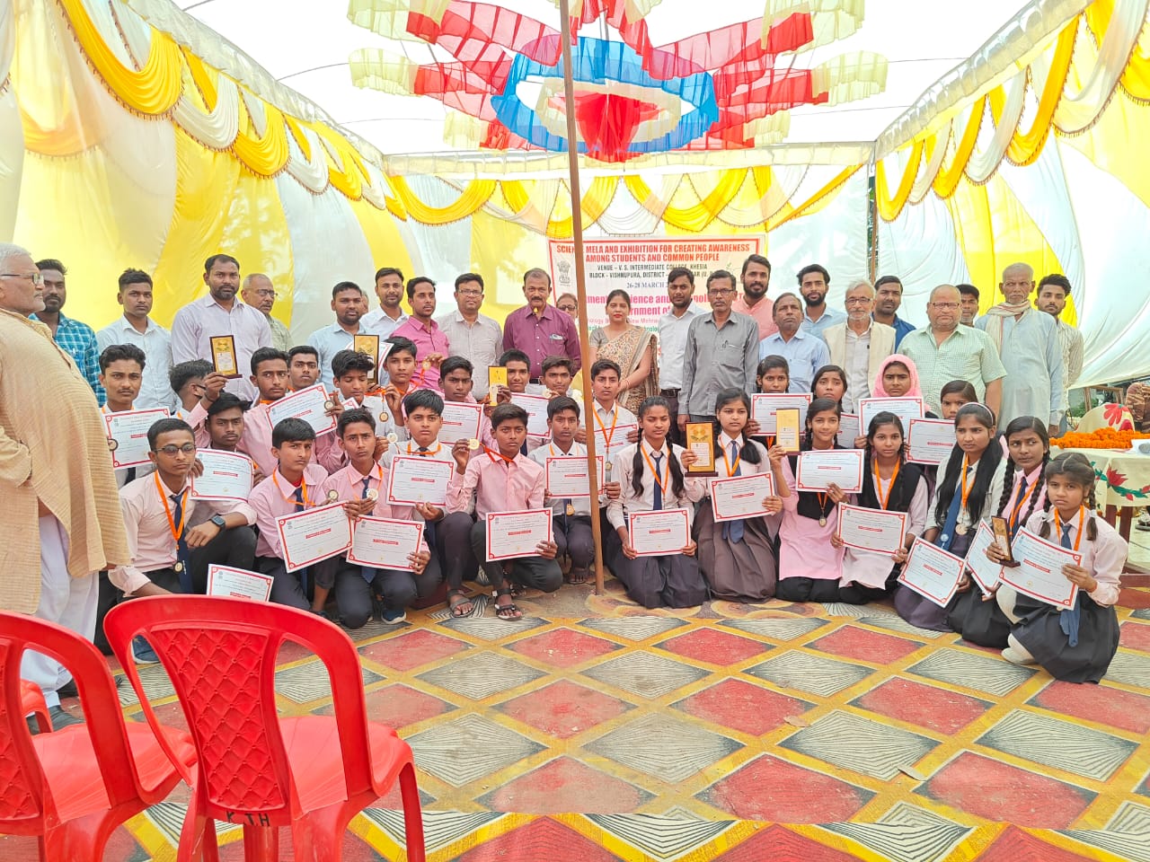 कार्यक्रम को संबोधित करते हुए मुख्य अतिथि पालीटेक्निक कालेज के मंशाछापर के प्रधानाचार्य प्रेमचंद गुप्ता ने कहा कि इस तरह की गतिविधियों से बच्चों के अंदर वैज्ञानिक सोच विकसित होती है, जिसे उन्हें अपनी वैज्ञानिक प्रतिभा को दिखाने का मौका मिलता है। कार्यक्रम के विशिष्ट अतिथि नवीन चंद्रा ने कहा कि विज्ञान के प्रति उत्साही छात्र-छात्राओं को नई सृजनात्मक खोज करने के लिए अध्यापक उचित मार्गदर्शन करें, तो निश्चित ही यह छात्र बेहतर कर विज्ञान के क्षेत्र में आगे बढ़ सकेंगे। कार्यक्रम को प्रबन्धक सुरेन्द्र सिंह, तृषा वर्मा आदि ने संबोधित किया। विज्ञान प्रदर्शनी में रसायन विज्ञान, भौतिक विज्ञान, वनस्पति विज्ञान एवं जंतु विज्ञान के जुड़ी विभिन्न मॉडलों की प्रदर्शनी लगाई गई। जिसमें छात्रों ने स्वच्छता, विभिन्न राज्यों की पारंपरिक जीवन शैली, रैन वाटर हारवेस्टिग, नमामि गंगे, पवन ऊर्जा, ज्वालामुखी, सौर ऊर्जा, यांत्रिक ऊर्जा, गोबर गैस सयंत्र, वर्मी कम्पोस्ट तैयार करना, जल संभरण और जल संरक्षण, वैक्यूम क्लीनर, सौर मंडल, पृथ्वी, सूर्य एवं चंद्रमा की गतियों की जानकारी माडलों के माध्यम से दी गई। छात्रों ने अपने माडलों के सिद्धांतों, क्रियाओं एवं अपनी वैज्ञानिक प्रतिभा का प्रदर्शन किया। विज्ञान माडल प्रतियोगिता में प्रथम, द्वितीय और तृतीय स्थान पर आने वाले छात्र-छात्राओं को मेडल और प्रशस्ति पत्र देकर सम्मानित किया। दिव्य ज्योति शिक्षा समिति के मुख्य समन्यवक विवेक कुमार सिंह ने सभी के प्रति आभार प्रकट किया। इस दौरान दिव्य ज्योति शिक्षा समिति फाजिलनगर के मुख्य समन्वय विवेक कुमार सिंह, रामप्रवेश सिंह, विपिन सिंह, नागमणि तिवारी, रितेश सिंह रामबालक, सुनील सिंह, अभिमन्यु कमरान अंसारी आदि मौजूद रहे।