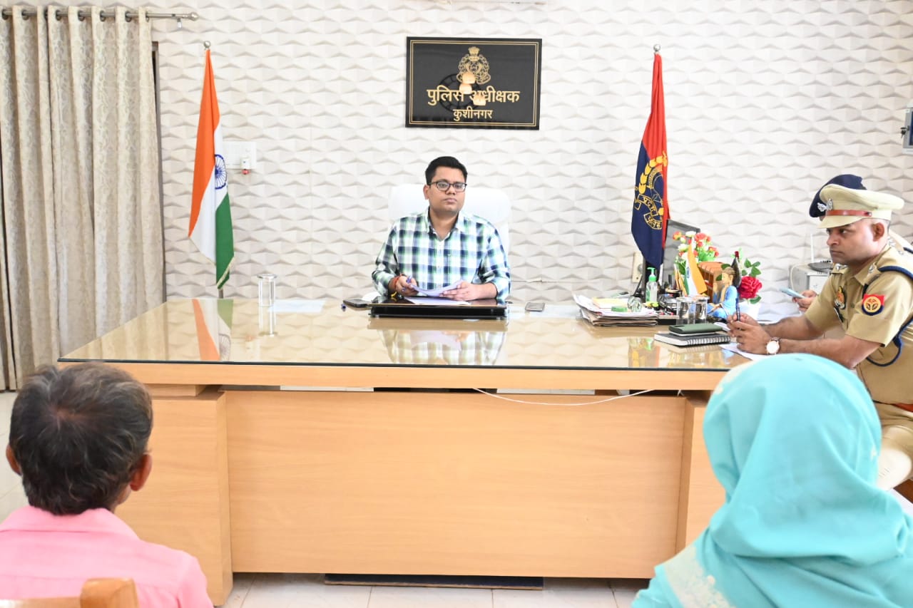 कुशीनगर(राष्ट्र की परम्परा)जनपद के पुलिस अधीक्षक धवल जायसवाल के द्वारा 29 अगस्त 2023 को पुलिस कार्यालय में जनता की समस्याओं को सुना गया।जिसमे अति महत्वपूर्ण समस्याओं को तत्काल प्रभाव से हल करने के लिए सम्बंधित को आदेशित किया तो वहीं अन्य समस्याओं को भी गुणवत्तापूर्ण एवं समयबध्द निस्तारण हेतु सम्बन्धित को निर्देशित किया।कार्यालय में आये फरियादियो के चेहरों पर मुस्कान के साथ संतुष्टि भारी आशाएं दिखाई दीं।