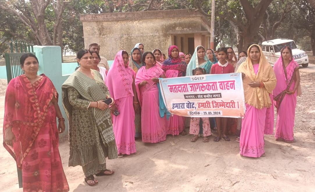 संत कबीर नगर (राष्ट्र की परम्परा)। जिला निर्वाचन अधिकारी/जिला मजिस्ट्रेट महेंद्र सिंह तंवर के निर्देश के क्रम में “व्यवस्थित मतदाता शिक्षा और चुनावी भागीदारी (स्वीप)” कार्यक्रम के अन्तर्गत विकास खण्ड खलीलाबाद के जिन बूथो पर 40 से 50 प्रतिशत तक मतदान हुये थे। उन बूथो के मतदाताओं को जागरुक किये जाने हेतु प्राथमिक विद्यालय की शिक्षकों द्वारा विकास खण्ड खलीलाबाद के ग्राम पटखौली एवं मौलाना आजाद इण्टर कालेज, खलीलाबाद पर ग्रामवासियों को ढोल मजीरा के साथ गीत संगीत के माध्यम से मतदाताओं को जागरुक किया गया तथा आगंनवाड़ी कार्यकात्रियों द्वारा विकास खण्ड-धनघटा के ग्राम पंचायत नेतारी कला एवं अकोलही आदि ग्रामों में क्षेत्रीय लोक संगीत के माध्यम से मतदाता जागरुकता सम्बन्धी प्रचार- प्रसार किया गया तथा ग्रामीणों को मतदान दिवस 25 मई 2024 को उनके मत के प्रयोग करने हेतु जागरुक किया गया तथा लोकतंत्र में उनकी सहभागिता के महत्व के बारे बताया गया।