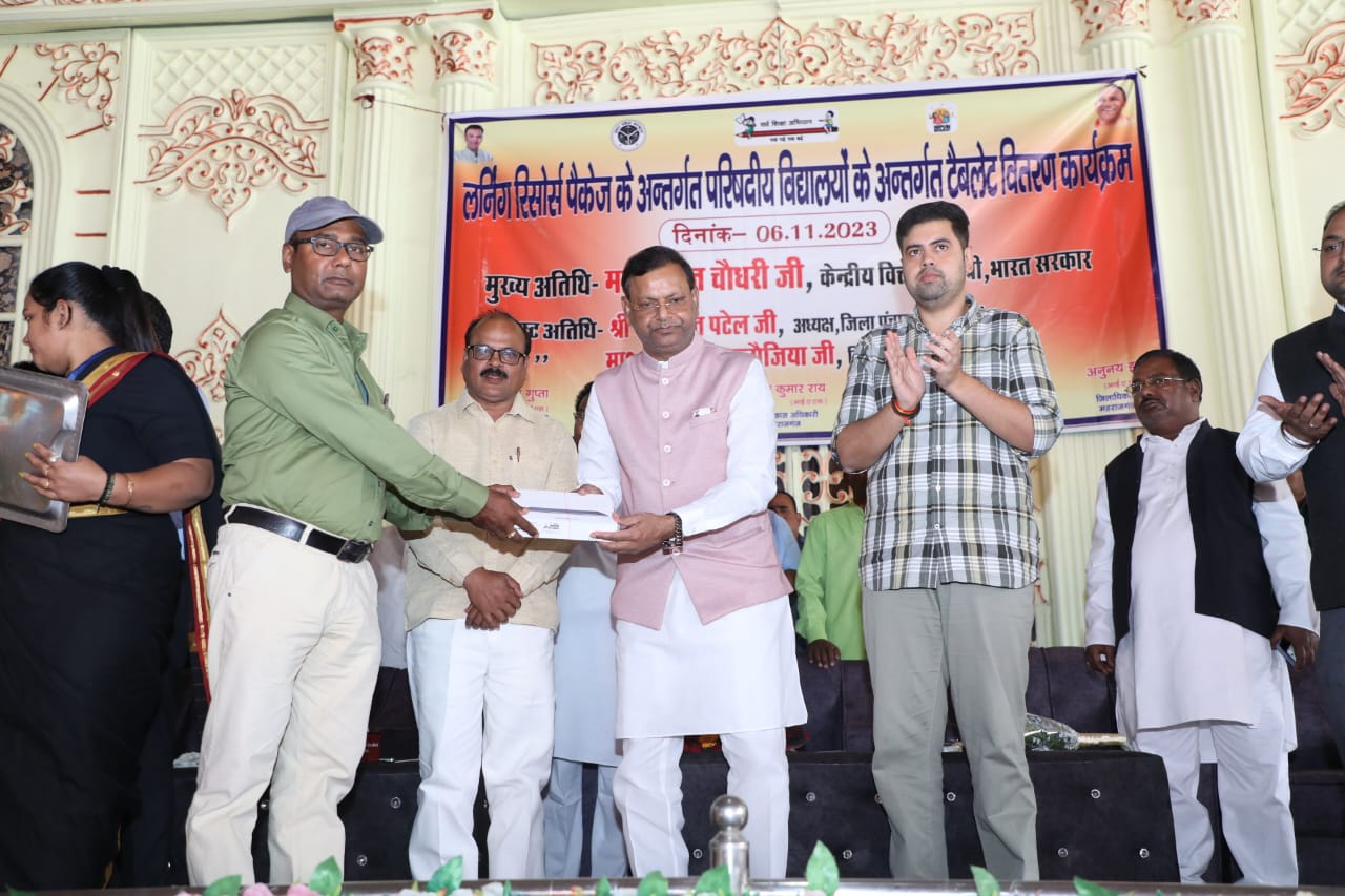 महराजगंज( राष्ट्र की परम्परा) ।केंद्रीय वित्त राज्यमंत्री पंकज चौधरी द्वारा समग्र शिक्षा अभियान के तहत लर्निंग रिसोर्स पैकेज के अन्तर्गत सभी परिषदीय प्राथमिक विद्यालय/उच्च प्राथमिक विद्यालय एवं कम्पोजिट विद्यालयों के शिक्षकों के उपयोगार्थ टैबलेट का वितरण महालक्ष्मी लॉन में किया गया।