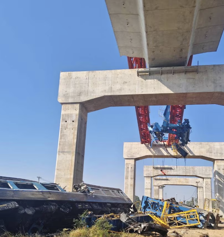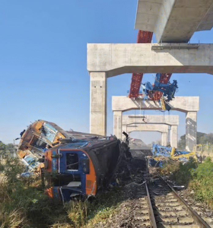 जिस क्रेन के गिरने से यह हादसा हुआ, वह निर्माणाधीन एलिवेटेड हाई-स्पीड रेल लाइन के काम में लगी थी, जो मौजूदा रेलवे ट्रैक के ऊपर बनाई जा रही थी।