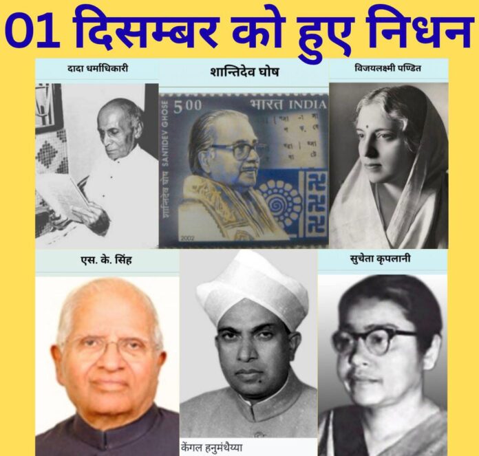 1 दिसंबर को दुनिया और भारत ने कई महान हस्तियों को खोया। इन व्यक्तित्वों ने अपने-अपने क्षेत्र में ऐसा योगदान दिया, जो आज भी समाज और राष्ट्र के मानस-पटल पर गहरी छाप छोड़ता है। आइए जानते हैं उनके जीवन और योगदान के बारे में संक्षेप में: