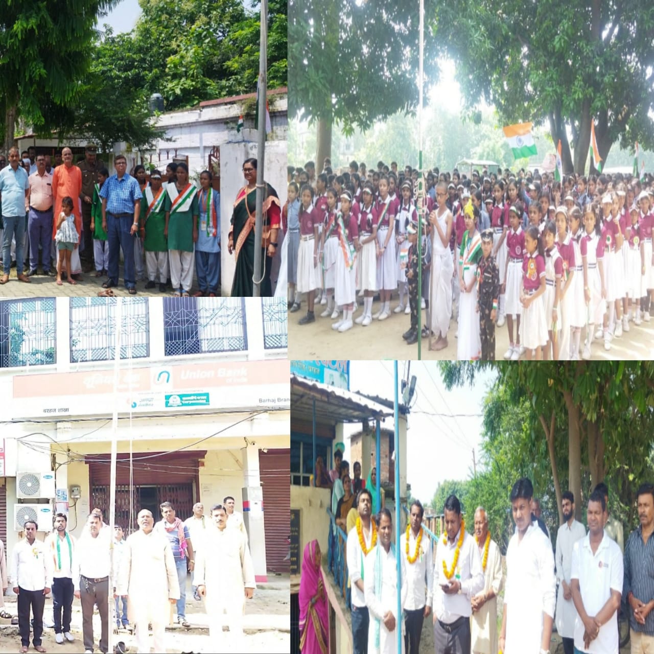 मंगलवार की सुबह पूरे तहसील क्षेत्र में स्वतंत्रता दिवस 15 अगस्त के पावन पर्व पर देशभक्ति की बयार बहने लगा , लोग अपने अपने शिक्षण संस्थाओं, निजी संस्थानों व घरों पर दिलो में आजादी की खुशी लेकर तिरंगा फहराया।