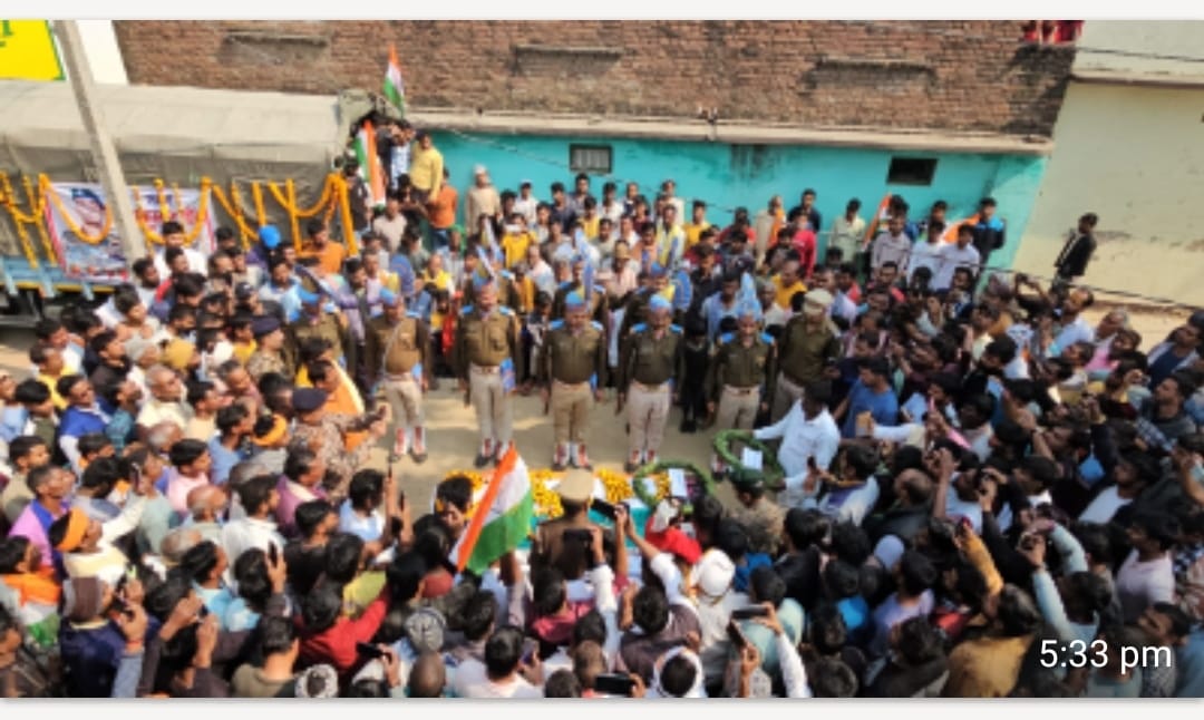 r“जब तक सूरज चांद रहेगा, राजकुमार तेरा नाम रहेगा… राजकुमार अमर रहे” के गगनभेदी नारों से रविवार को धनौती गांव और आसपास का पूरा इलाका गूंज उठा। छत्तीसगढ़ के धमतरी जिले में शनिवार की सुबह हुए भीषण सड़क हादसे में केंद्रीय रिजर्व पुलिस बल (CRPF) के चार जवानों की दर्दनाक मृत्यु हो गई थी। इनमें जनपद बलिया के सुखपुरा थाना क्षेत्र अंतर्गत ग्राम पंचायत धनौती निवासी कॉन्स्टेबल राजकुमार गोंड भी शामिल थे।