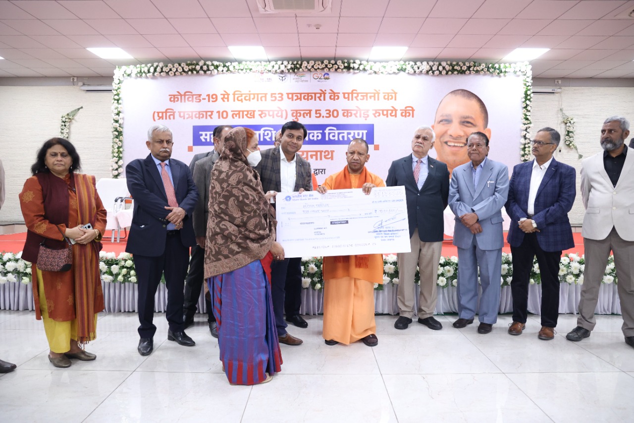 देवरिया (राष्ट्र की परम्परा)। मुख्यमंत्री योगी आदित्यनाथ ने कोरोना महामारी में कोरोना महामारी से दिवंगत हुए 53 पत्रकारों के परिजनों को 10-10 लाख रुपयों की आर्थिक सहायता दी है। सीएम योगी ने अपने सरकारी आवास पर इन पत्रकारों के आश्रितों को चेक बांटे। कोरोना काल में दिवंगत हुए जनपद देवरिया के मान्यता प्राप्त पत्रकार स्व0 सुधाकर पांडेय की पत्नी सरोज पांडेय को 10 लाख का चेक मुख्यमंत्री जी द्वारा प्रदान दिया गया।
