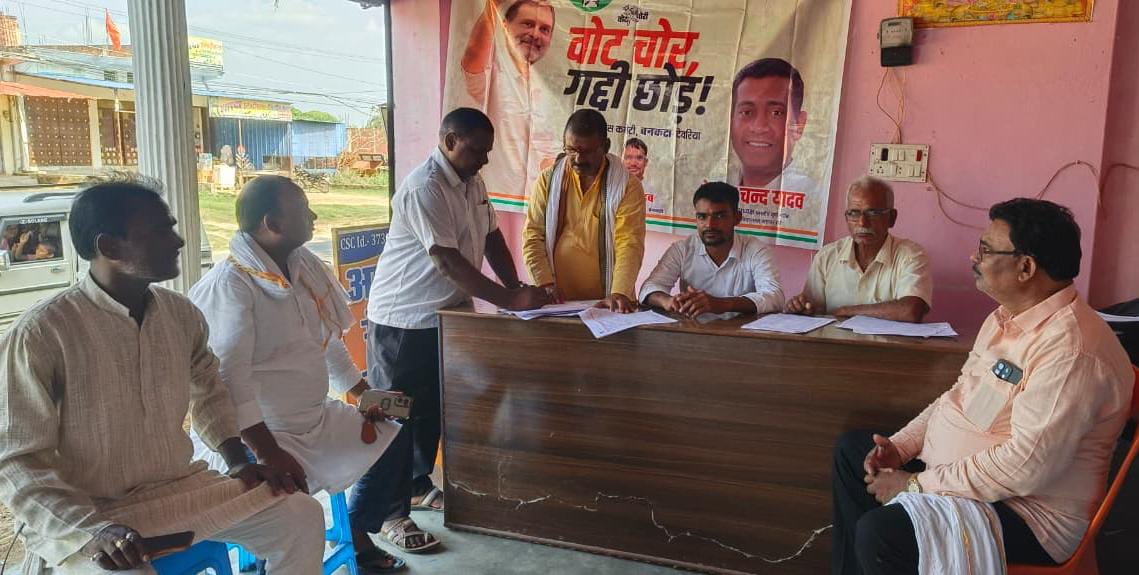 शीर्ष नेतृत्व के निर्देश पर चलाए जा रहे ‘वोट चोर गद्दी छोड़ो’ हस्ताक्षर अभियान के तहत कांग्रेस कार्यकर्ताओं ने ब्लॉक अध्यक्ष बनकटा बृजेश यादव के नेतृत्व में सोहनपुर बाजार समेत कई प्रमुख चौराहों पर हस्ताक्षर अभियान चलाया।