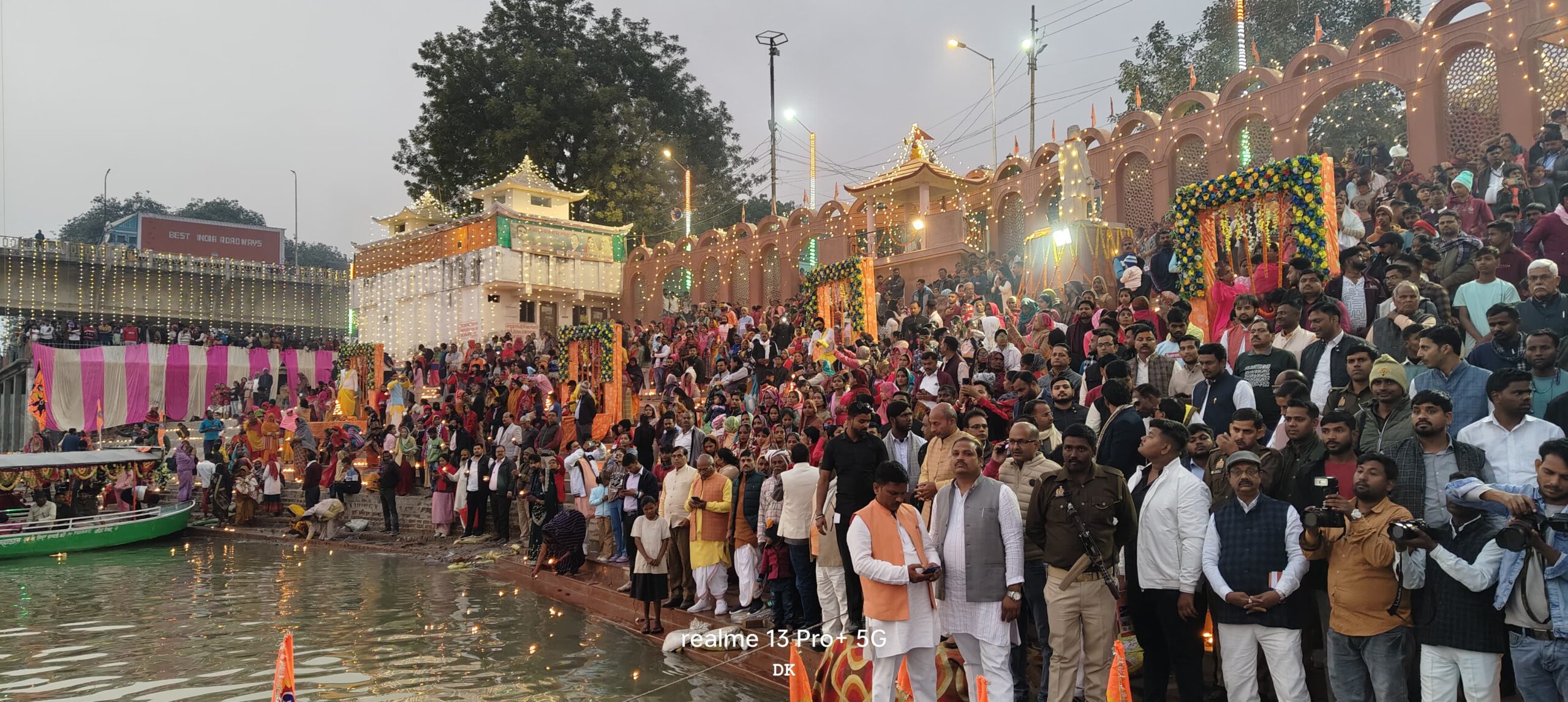 बड़हलगंज(राष्ट्र की परम्परा)।विगत तीन दिनों से चल रहे सरयू अमृत महोत्सव के अंतिम दिन सरयू तट स्थित मुक्तिपथ पर इक्कीस हजार दीपों से मां सरयू की आरती हुई। इस दौरान पूरा मुक्तिपथ श्मशान स्थल व सरयू घाट रोशनी से जगमग हो उठा। रविवार को सरयू महोत्सव के तीसरे दिन जहां विभिन्न सांस्कृतिक कार्यकमों की प्रस्तुति हुई तो वहीं दोपहर में सरयू की धारा में नौका दौड़ का भी आयोजन किया गया, जिसमें प्रथम पुरस्कार योगेन्द्र साहनी, राधेश्याम को द्वितीय एवं वीरेंद्र को तृतीय पुरस्कार दिया गया। तत्पश्चात अध्यात्म, चिकित्सा, पत्रकारिता, समाजसेवा, कृषि, शिक्षा सहित कुल 13 क्षेत्रों में 26 लोगों को सरयू रत्न तथा महिला सशक्तीकरण के क्षेत्र में कार्य करने वाली दो महिलाओं को अपराजिता सम्मान दिया गया। वहीं देर शाम इक्कीस हजार दीपों से जल, थल व नभ में सरयू की भव्य आरती की गई। इस दौरान पूरा सरयू तट दीपों की रोशनी से जगमगा उठा। इस दौरान गोविंद वर्मा की टीम ने सरयू आरती व महाकाल की आरती का भव्य मंचन कर सबको भावविभोर कर दिया। देर शाम तक उड़ीसा, मध्य प्रदेश, छत्तीसगढ़ आदि प्रदेशों से आये कलाकारों की टीम ने विभिन्न रंगारंग प्रस्तुति देकर दर्शकों की वाहवाही लूटी। इस दौरान रंगमहल अयोध्या के पीठाधीश्वर रामशरण दास महाराज, एमएलसी सीपी चंद, पिपराइच के विधायक महेंद्रपाल सिंह, गोरखपुर ग्रामीण विधायक विपिन सिंह, सहजनवा विधायक प्रदीप शुक्ल, चेयरमैन प्रीति उमर, बड़हलगंज ब्लॉक प्रमुख रामाशीष राय, गगहा ब्लॉक प्रमुख शिवाजी चंद, ब्लॉक प्रमुख पिपरौली दिलीप यादव, चेयरमैन प्रतिनिधि महेश उमर, सभासद दीपक शर्मा, लक्ष्मण साहनी, राजीव पांडेय, श्रीकांत सोनी, नित्यानंद मिश्रा, विपिन तिवारी, ह्रदयशंकर सिंह, प्रवीण दुबे सहित हजारों की संख्या में लोग मौजूद रहें। सरयू अमृत स्मारिका का हुआ विमोचन सरयू महोत्सव के मंच से सरयू अमृत स्मारिका का विमोचन अयोध्या रंगमहल पीठाधीश्वर रामशरण दास महाराज, एमएलसी सीपी चंद, अंतर्राष्ट्रीय कथावाचक रमेश भाई शुक्ल, विधायक राजेश त्रिपाठी आदि के हाथों किया गया। इस पत्रिका में प्रधानमंत्री नरेंद्र मोदी, राज्यपाल आनंदीबेन पटेल, पर्यटन मंत्री जयवीर सिंह, जल शक्ति मंत्री स्वतंत्र देव सिंह सहित कई मंत्रियों का महोत्सव को लेकर संदेश छपा है। इसके अतिरिक्त स्मारिका में कई सामाजिक मुद्दों पर लेख भी प्रस्तुत किए गए हैं।