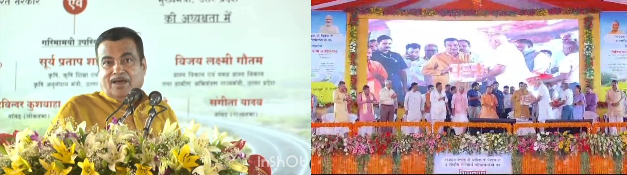 देवरिया(राष्ट्र की परम्परा) मुख्यमंत्री योगी आदित्यनाथ एवं सड़क परिवहन राजमार्ग मंत्री भारत सरकार नितिन गडकरी ने जनपद में रु0 6200 करोड़ की 5 राष्ट्रीय राजमार्ग परियोजनाओं का शिलान्यास किया, जिसमें नवलपुर-सिकन्दरपुर खण्ड का 2/4 लेन पेव्डशोल्डर सड़क का निर्माण(एन0एच0 727बी, कुल लम्बाई 45 कि0मी0, कुल लागत रु0 2060 करोड़), 4 लेन देवरिया बाईपास का निर्माण, कार्य शुभारम्भ(एनएच 727ए, कुल लम्बाई 22 कि0मी0, कुल लागत रु0 1735 करोड़), 4 लेन सलेमपुर बाईपास का निर्माण(एनएच 727ए एवं एनएच 727बी, कुल लम्बाई 15 कि0मी0, कुल लागत रु0 1348 करोड़), तमकुहीराज-बिहार बार्डर-मझौली खण्ड का 2 लेन पेव्डशोल्डर सड़क का निर्माण(एनएच 727बी, कुल लम्बाई 25 कि0मी0, कुल लागत रु0 700 करोड़), सलेमपुर- मैरवा खण्ड का 2 लेन पेव्डशोल्डर सड़क का निर्माण(एनएच 727ए, कुल लम्बाई 21 कि0मी0, कुल लागत रु0 372 करोड़) शामिल है। इस अवसर पर विभिन्न लाभार्थीपरक योजनाओं के लाभार्थियों में आवास की चाबी, टूलकिट आदि का वितरण भी किया गया।