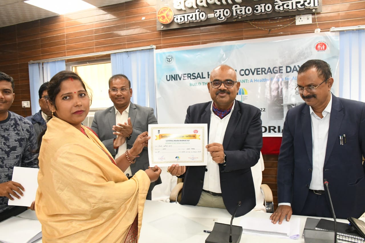 यूनिवर्सल हेल्थ कवरेज डे के अवसर पर जिलाधिकारी जितेंद्र प्रताप सिंह ने सोमवार को सीएमओ कार्यालय स्थित धनवंतरि सभागार में स्वास्थ्य सेवाओं में बेहतर योगदान देने वाले चिकित्साकर्मियों को सम्मानित किया।