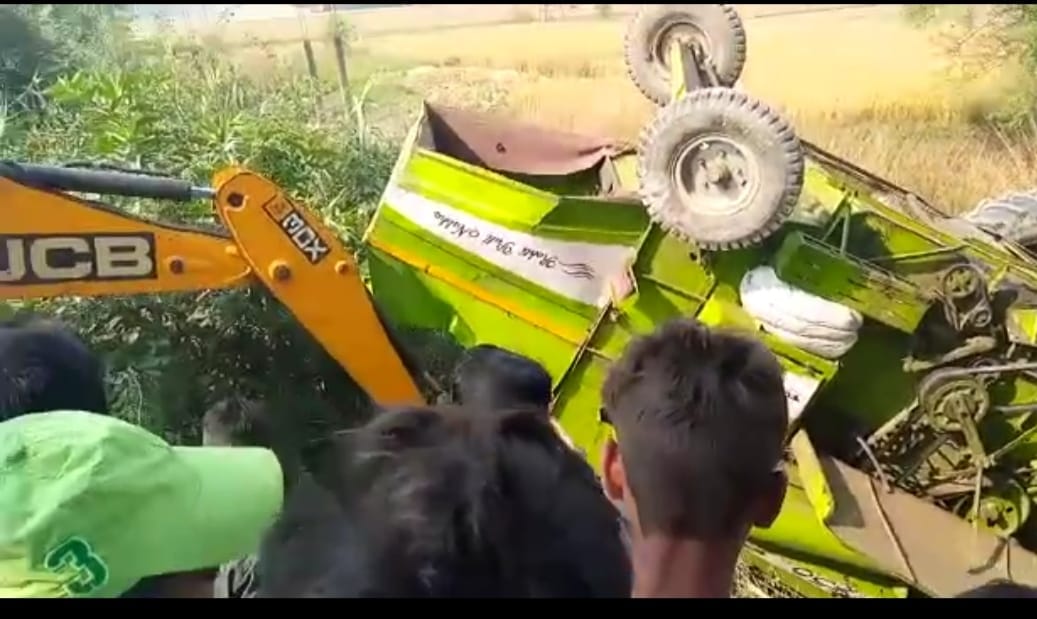 सिकंदरपुर थाना क्षेत्र के नवरतनपुर लीलकर मार्ग पर नरहनी गांव के पास शनिवार को हार्वेस्टर पलटने से चालक और सहचालक दोनों हार्वेस्टर के नीचे दब गए। आस-पास के लोगों ने जेसीबी की मदद से दोनों को बाहर निकलवाकर सीएचसी सिकन्दरपुर पहुंचाया, जहां चिकित्सकों ने एक को मृत घोषित कर दिया। वहीं, दूसरे की स्थिति गम्भीर देख जिला अस्पताल रेफर कर दिया।नरहनी गांव में धान की कटाई करने के लिए बिहार राज्य के बक्सर से आई हार्वेस्टर मशीन जा रही थी। गांव के उत्तर तरफ टीएस बंधे से जैसे ही चालक ने मशीन को खेत में उतारने का प्रयास किया, हार्वेस्टर असंतुलित होकर चारो खाने चित्त हो गई। जिसके नीचे बिहार राज्य के पूर्णिया जिला अंतर्गत मोहनिया नबटोलिया निवासी 26 वर्षीय चालक बिट्टू शर्मा व सहचालक 28 वर्षीय दिलीप कुमार यादव हार्वेस्टर के नीचे दब गए। हार्वेस्टर पलटने की आवाज सुन मौके पर पहुंचे स्थानीय लोगों होली स्पेक्टर योगेश यादव ने दोनों घायलों को एक घण्टे बाद जेसीबी की मदद से बाहर निकलवाया और सामुदायिक स्वास्थ्य केंद्र सिकन्दरपुर पहुंचाया। चिकित्सकों ने जांचोपरांत बिट्टू शर्मा को मृत घोषित कर दिया। जबकि गम्भीर रूप से घायल दिलीप को जिला चिकित्सालय रेफर कर दिया। उधर घटना की जानकारी होने पर हॉस्पिटल पहुंची चौकी प्रभारी सिकंदरपुर ज्ञानचंद शुक्ला ने मृतक के शव को अन्त्य परीक्षण के लिए जिला मुख्यालय भेज दिया। समाचार लिखे जाने तक पुलिस ने ग्राम प्रधान से तहरीर लेकर पोस्टमार्टम के लिए शव को भेज दिया