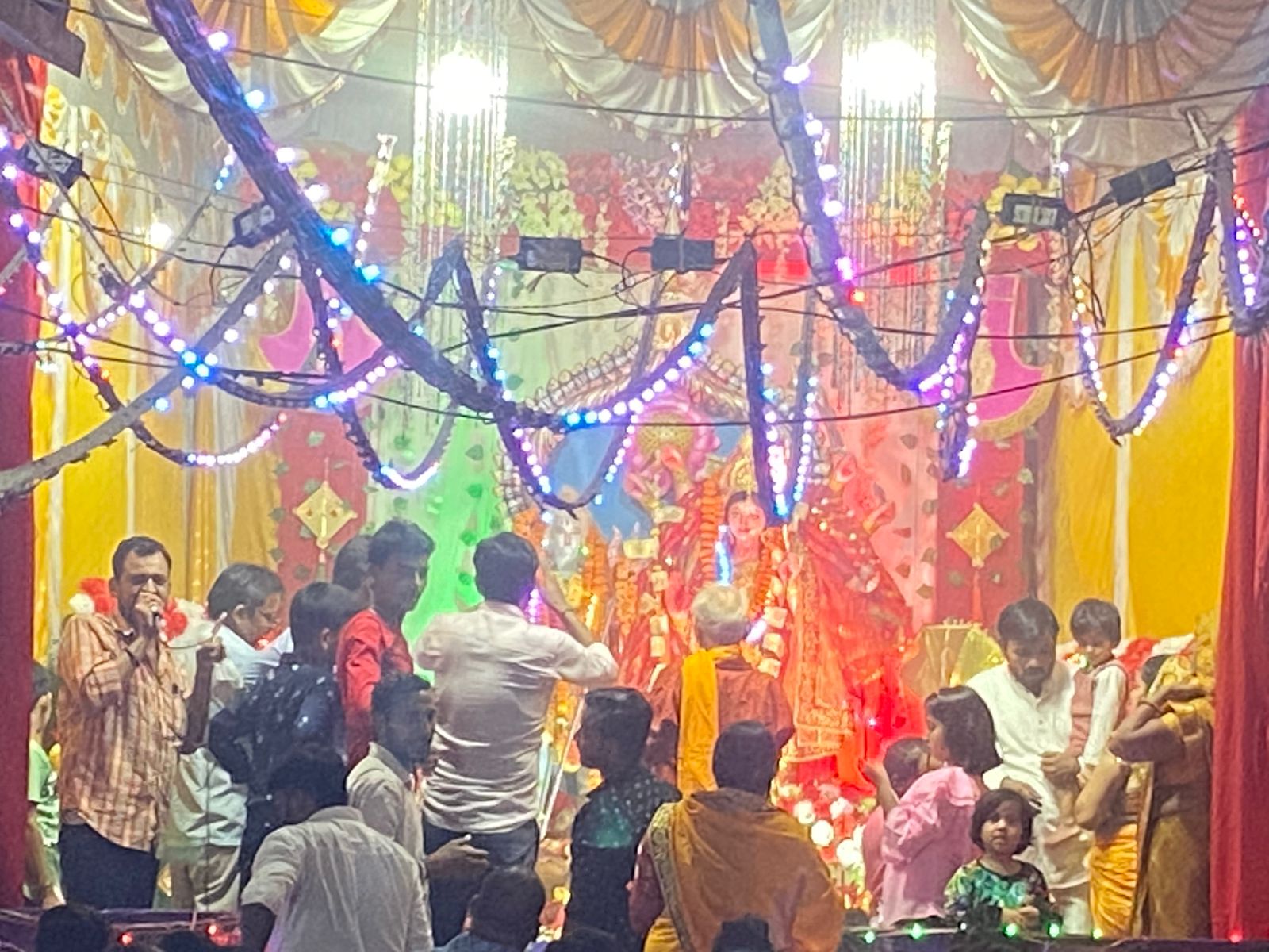 स्थानीय क्षेत्र के मोहल्ला अंजही में स्थित श्री हरीओम दुर्गा पूजासमिति पंडाल में शारदीय नवरात्रि के आठवें दिन सोमवार को माँ दुर्गा के अष्टम स्वरूप महागौरी की पूजा हुई। इस अवसर पर श्री हरीओम दुर्गा पूजासमिति के तत्वाधान में मोहल्ला अंजही में स्थापित दुर्गा पंडाल में नवरात्रि के आठवें दिन माँ शेरावाली के दर्शन करने के लिए भक्तों की जन सैलाब उमड़ पड़ा, पंडाल में आरती लेने के लिएभारी संख्या में श्रद्धालु भीड़ देखा गया तथा पूरे पंडाल की आकर्षक सजावट भी की गयी थी। इसके बाद दीपदान का कार्यक्रम आरंभ हुआ जिसमें मोहल्ले की महिलाएं एवं बच्चियां ने सहभागिता दिखाई 1051 दीपदान व रंगोली भव्य सजावट पंडाल एक आकर्षण का केन्द्र बना आरती बहुत ही शांतिपूर्ण सौहार्द के साथ की गई। 1051 दीपदान से पूरा पंडाल जगमगा उठा तथा दर्शन के लिए निकले श्रद्धालुओं ने इस अद्भुत दृश्य को अपने कैमरे में कैद किया है इस पंडाल में दुर्गा पूजा समिति की कमेटी के कार्यकर्ताओं एवं श्रद्धालुओं द्वारा भव्य सजावट किया गया मोहल्ले वासी एवं भक्तगण पंडाल में नौ दिन तक लगातार उपस्थित रहते है l