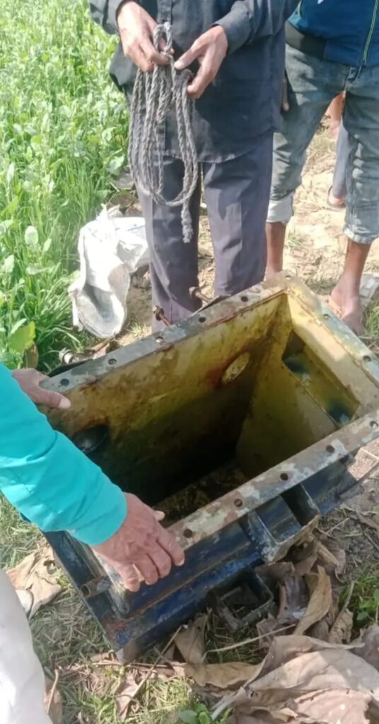 рддрд╛рд▓рд╛рдм рдХрд╛ рдЬрд▓ рд╕реНрддрд░ рдХрдо рд╣реЛрдиреЗ рдХреЗ рдмрд╛рдж рд╕реБрдмрд╣ рдЯрд╣рд▓рдиреЗ рдирд┐рдХрд▓реЗ рдЧреНрд░рд╛рдореАрдгреЛрдВ рдХреА рдирдЬрд░ рдкрд╛рдиреА рдореЗрдВ рдкрдбрд╝реА рднрд╛рд░реА рд▓реЛрд╣реЗ рдХреА рд╕рдВрд░рдЪрдирд╛ рдкрд░ рдкрдбрд╝реАред рдирдЬрджреАрдХ рдЬрд╛рдХрд░ рджреЗрдЦрдиреЗ рдкрд░ рдкрддрд╛ рдЪрд▓рд╛ рдХрд┐ рдпрд╣ рд╡рд╣реА 10 рдХреЗрд╡реАрдП рдЯреНрд░рд╛рдВрд╕рдлрд╛рд░реНрдорд░ рд╣реИ, рдЬреЛ рдкрд┐рдЫрд▓реЗ рд╕рд╛рд▓ рд░рд╣рд╕реНрдпрдордп рддрд░реАрдХреЗ рд╕реЗ рдкреЛрд▓ рд╕реЗ рдЧрд╛рдпрдм рд╣реЛ рдЧрдпрд╛ рдерд╛ред рдЧреНрд░рд╛рдореАрдгреЛрдВ рдиреЗ рддреБрд░рдВрдд рдмрд┐рдЬрд▓реА рд╡рд┐рднрд╛рдЧ рдХреЛ рд╕реВрдЪрдирд╛ рджреА, рдЬрд┐рд╕рдХреЗ рдмрд╛рдж рд╡рд┐рднрд╛рдЧреАрдп рдХрд░реНрдордЪрд╛рд░рд┐рдпреЛрдВ рдиреЗ рдореМрдХреЗ рдкрд░ рдкрд╣реБрдВрдЪрдХрд░ рдЯреНрд░рд╛рдВрд╕рдлрд╛рд░реНрдорд░ рдХреЛ рддрд╛рд▓рд╛рдм рд╕реЗ рдмрд╛рд╣рд░ рдирд┐рдХрд▓рд╡рд╛рдпрд╛ред