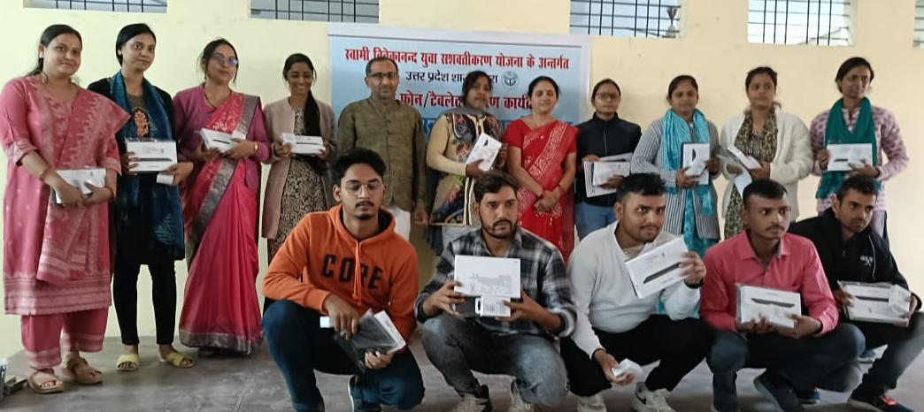 संत कबीर नगर (राष्ट्र की परम्परा)। जनपद मुख्यालय स्थित प्रभा देवी स्नातकोत्तर महाविद्यालय में शुक्रवार प्रदेश सरकार की महत्वांकाक्षी योजना स्वामी विवेकानंद युवा सशक्तिकरण योजना के अंतर्गत परास्नातक के कुल 42 छात्र-छात्राओं को टैबलेट का वितरित किया गया शेष छात्रों को ई केवाईसी के उपरांत शीघ्र ही वितरित किया जाएगा। वितरण समारोह की मुख्य अतिथि सचिव/प्रबन्धक पुष्पा चतुर्वेदी रहीं। महाविद्यालय में सत्र 2022- 23 व 2023-24 में एमए, एमकॉम व एमएड परीक्षा उत्तीर्ण कर चुके छात्र-छात्राओं को निःशुल्क टैबलेट दिए गए।