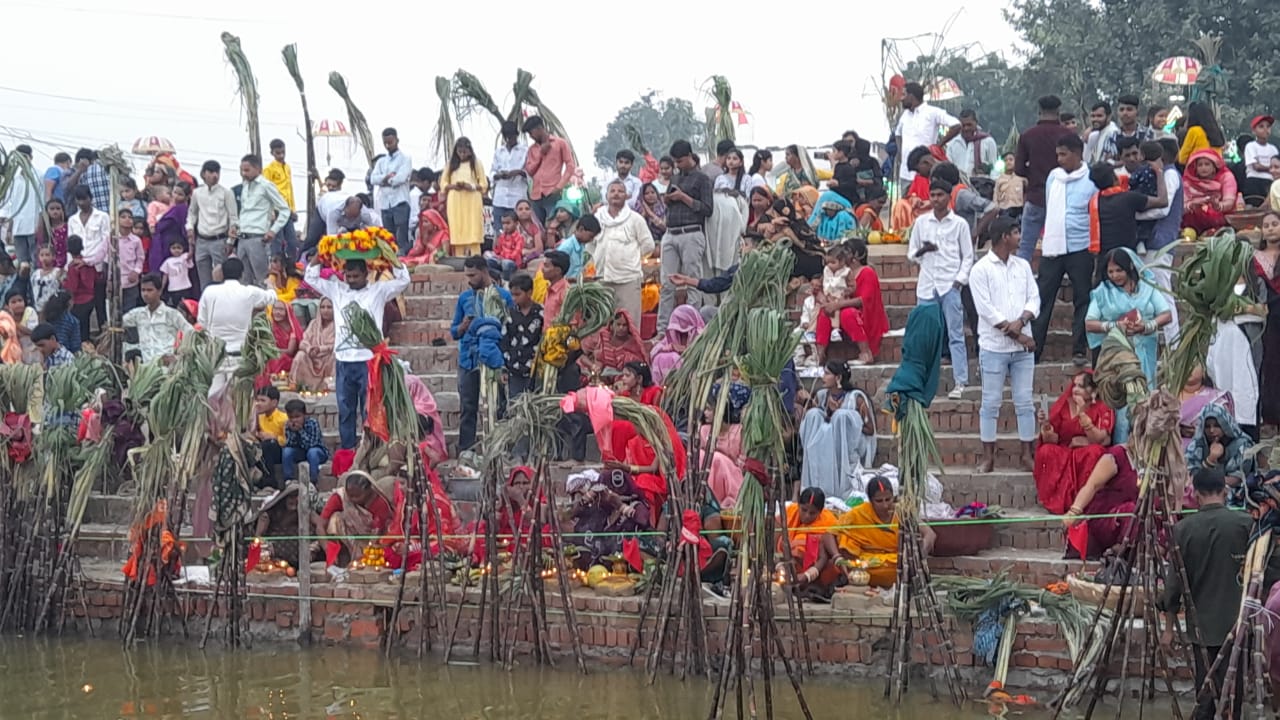छठ महापर्व: अस्ताचलगामी सूर्य को दिया गया अर्घ्य, जिले के घाटों पर दिखा अद्भुत नजारा