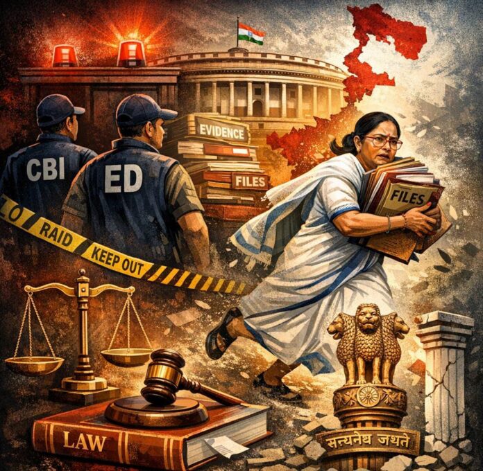 पश्चिम बंगाल की घटना केवल एक क्षणिक राजनीतिक प्रतिक्रिया नहीं, बल्कि संवैधानिक मर्यादाओं और संस्थागत संतुलन पर गहराते संकट की ओर संकेत करती है। जब कोई केंद्रीय एजेंसी विधिसम्मत प्रक्रिया के तहत छापा मार रही हो और उसी समय राज्य का मुख्यमंत्री वहाँ पहुँचकर फाइलें उठाने लगे, तो यह दृश्य अपने-आप में कई गंभीर प्रश्न खड़े करता है। यह सवाल केवल सत्ता के दुरुपयोग का नहीं, बल्कि कानून के शासन की अवधारणा पर सीधी चोट का है।