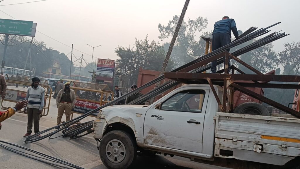 रेलवे बस स्टेशन चौक पर बड़ी दुर्घटना घटित होने से बची आज सुबह नॉर्मल स्कूल के तरफ से तेज रफ्तार से आ रही पिकअप के चालक ने रेलवे बस स्टेशन चौक पर अचानक ब्रेक लगा दिया, पिकअप के ऊपर लोहे का सरिया सड़क पर आगे भर भरा कर गिर गया। चौराहे पर आगे चल रहे वाहन चालकों में दहशत फैल गया। चौराहे पर ट्रैफिक विभाग के पुलिस जवानों ने पिकअप के ऊपर से गिरे सरिया को अपने लोगों से सरिया हटवा कर जाम हुए रास्ते को खुलवाने का कार्य किया, गनीमत रहा की पिकअप से गिरे सरिया के आगे कोई वाहन चालक या पैदल यात्री नहीं था नहीं तो बड़ी दुर्घटना हो सकती थी, ऐसे लापरवाह पिकअप चालकों के ऊपर सख्त से सख्त कार्रवाई होनी चाहिए जो पिकअप के ऊपर सरिया रखकर फराटा भरते हुए अपने पिकअप को चलाने का कार्य करते हैं। जब भी एक पिकअप ब्रेक लगाते हैं सरिया आगे गिर जाता है जिससे बड़ी दुर्घटना की संभावना बराबर बनी रहती है, ऐसे पिकअप चालकों के ऊपर कार्यवाही होनी चाहिए जिससे जान को जोखिम डालकर पिकअप वाहन चालक अपना वाहन ना चला सके। बरहाल ट्रैफिक पुलिस ने सरिया को सड़क से किनारे रखवा कर पिकअप को अपने कब्जे में ले कर कानूनी प्रक्रिया शुरू कर दिया है।