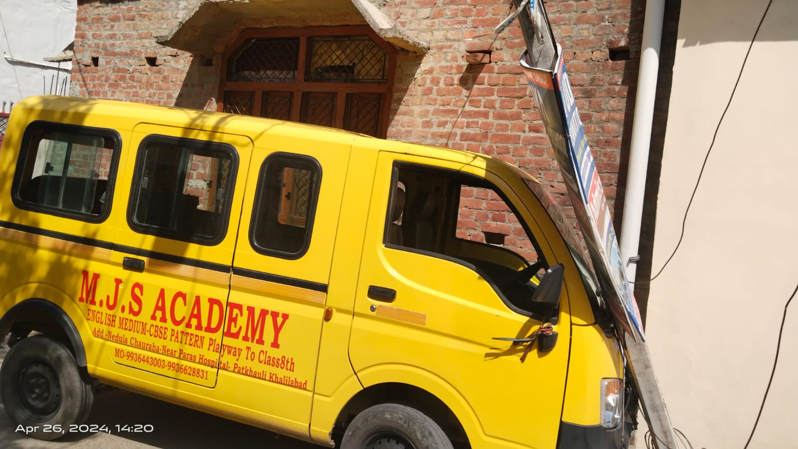 संतकबीर नगर (राष्ट्र की परम्परा)। जनपद मुख्यालय खलीलाबाद के नेदुला बाईपास स्थित एमजेएस एकेडमी का एक स्कूल वाहन अनियंत्रित होकर बिजली के खंभे टकरा गया। जिससे कई बच्चे हुए घायल हो गए।