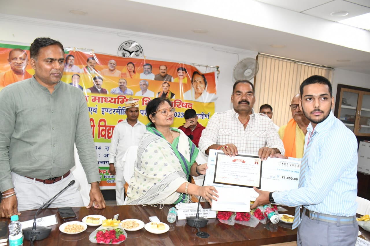 राज्य स्तरीय मेरिट लिस्ट में स्थान बनाने वाली छात्रा आफरीन खातून को एक लाख रुपये तथा अन्य समस्त जनपद स्तरीय टॉपरों को 21-21 हजार रुपए डीबीटी के माध्यम से खाते में ट्रांसफर कर दिए गए। इसके अतिरिक्त समस्त टापरों को टेबलेट एवं मेडल भी दिया गया।इस अवसर पर जिला विकास अधिकारी रविशंकर राय, डीआईओएस विनोद कुमार राय, एडीआईओएस महेंद्र कुमार, अभय द्विवेदी सहित विभिन्न अधिकारी एवं गणमान्य नागरिक मौजूद थे।