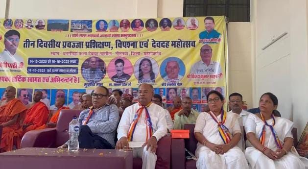 महराजगंज/उत्तर प्रदेश (राष्ट्र की परम्परा)। नौतनवां तहसील क्षेत्र के लक्ष्मीपुर ब्लॉक में स्थित प्राचीन बौद्ध स्थल देवदह में तीन दिवसीय प्रवज्जा प्रशिक्षण, विपश्यना और देवदह महोत्सव का भव्य समापन गुरुवार को हुआ। समारोह में देशभर से आए बौद्ध भिक्षु, अनुयायी और स्थानीय नागरिकों ने हिस्सा लिया।