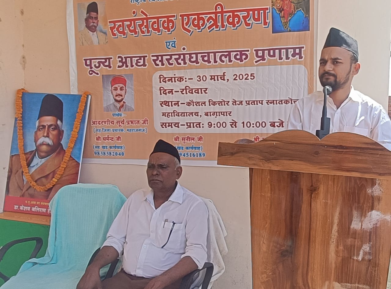 उक्त विचार राष्ट्रीय स्वयं सेवक संघ सदर द्वारा कौशल किशोर तेज प्रभात पीजी कालेज बागापार में आयोजित वर्ष प्रतिपदा एवं आद्य सर संघ चालक प्रणाम कार्यक्रम में अपने विचार व्यक्त करते हुए राष्ट्रीय स्वयं सेवक संघ के सह जिला प्रचारक सूर्य प्रताप ने व्यक्त किया।