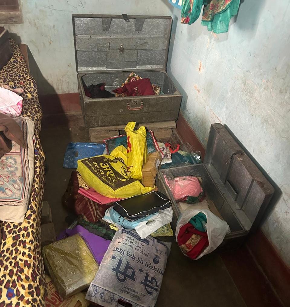 घर के पास बिखरा सामान देखकर उन्होंने शोर मचाया। शोर सुनकर मकसूदन यादव मौके पर पहुंचे और घर के अंदर जाकर देखा तो कमरे में रखा बक्सा टूटा हुआ था। बक्से में रखा सारा सामान गायब था, जिससे चोरी की पुष्टि हुई।