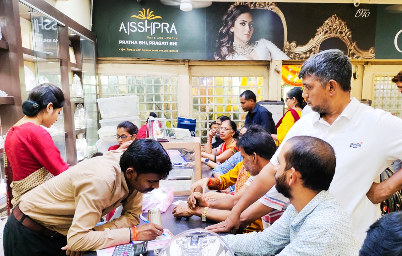 गोरखपुर (राष्ट्र की परम्परा)l धनतेरस के अवसर पर उत्तर भारत की प्रतिष्ठित ज्वेलरी चेन शोरूम ऐश्प्रा जेम्स एंड ज्वेल्स के स्टोर्स पर ग्राहकों में ज्वेलरी शॉपिंग को लेकर जबरदस्त उत्साह देखा गया। ग्राहकों ने ऐश्प्रा जेम्स एंड ज्वेल्स शोरूम से अपनी पसंदीदा ज्वेलरी, सोने-चाँदी के सिक्को व चाँदी के बर्तनों की शॉपिंग कर धनतेरस के त्यौहार को परिवार सहित धूमधाम व उत्साह से मनाया। कस्टमर्स के अत्यधिक उत्साह को देखते हुए उनकी सुविधा हेतु शोरूम पर विशेष व्यवस्थाएं की गई थी ताकि उन्हें किसी प्रकार की असुविधा न हो और वे संतुष्टि के साथ अपनी खरीदारी पूरी कर सकें। ऐश्प्रा जेम्स एंड ज्वेल्स शोरूम में धनतेरस व दीपावली को देखते हुए सोने, चांदी, प्लेटिनम व डायमंड के आभूषणों, सोने-चाँदी के सिक्कों व चाँदी के बर्तनो की विस्तृत, भव्य व खूबसूरत रेंज उपलब्ध हैं। धनतेरस पर्व पर ग्राहकों की भारी भीड़ के चलते शोरूम देर रात तक खुला रहा।