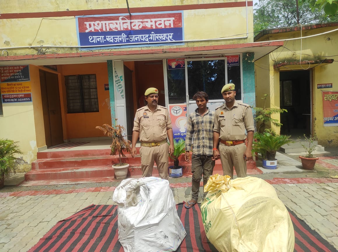 खजनी थाने के अंतर्गत रुद्रपुर तिराहे पर स्थित मैरिज हाउस से शातिर चोर आनंद कुमार यादव पुत्र दूधनाथ यादव उम्र 20 वर्ष जो बर्तन चोरी करके जा रहा था, तभी मुखबीर की सूचना पर खजनी पुलिस ने चोर को गिरफ्तार किया। चोरी की एक घटना के मामले में पुलिस को सफलता मिली। थानाध्यक्ष शैलेन्द्र कुमार शुक्ला के नेतृत्व में एसआई राहुल मिश्रा ने पुलिस टीम के साथ बीते दिनों कस्बे में स्थित एक मैरेज हाॅउस से चोरी हुए बर्तनों को चुराने वाले शातिर चोर आनंद यादव (20 वर्ष) को गिरफ्तार कर लिया, उसकी निशानदेही पर पुलिस ने चोरी के बर्तनों को बरामद करते हुए विधिक कार्रवाई के बाद आरोपित न्यायिक हिरासत में कोर्ट में पेश करते हुए जेल भेज दिया है।