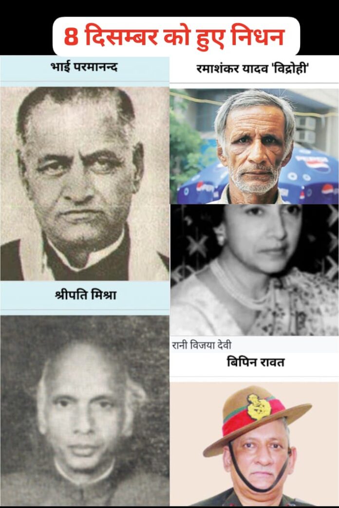 - भाई परमानन्द (निधन: 8 दिसंबर 1947)