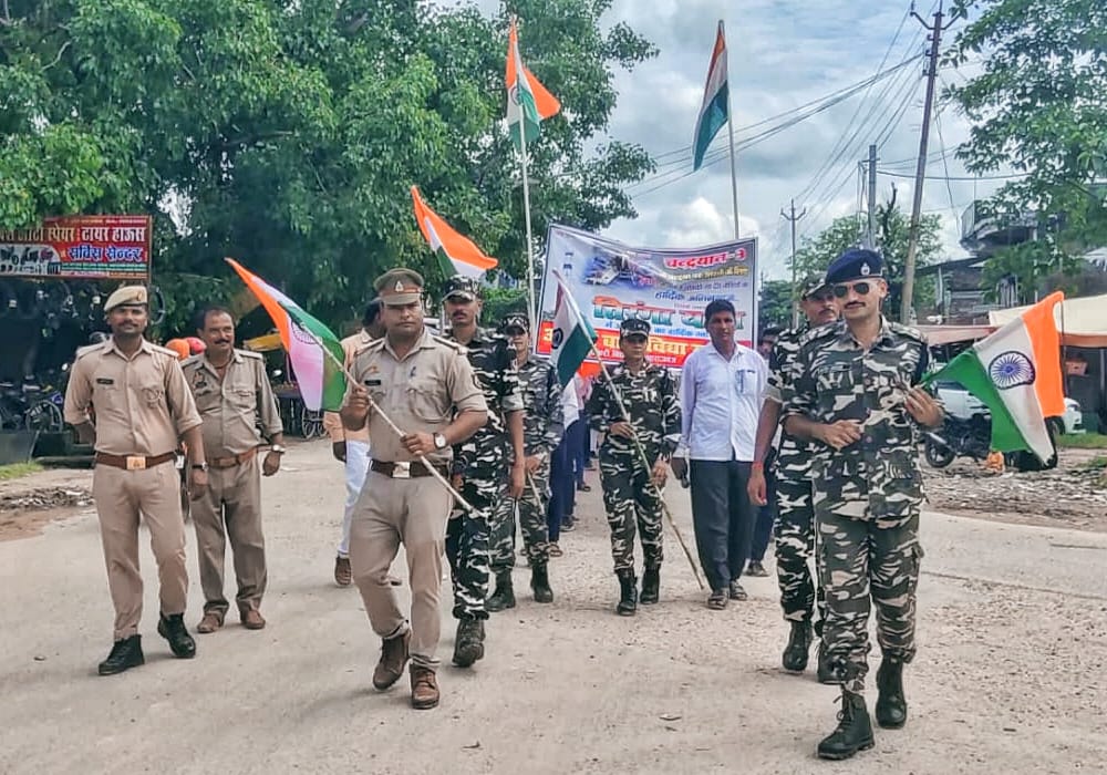 गुरुवार की दोपहर एसएसबी के बीओपी इंचार्ज अजय कुमार हुड्डा व कोतवाली के उपनिरीक्षक अजय कुमार ने संयुक्त रुप से रैली को हरी झंडी दिखाकर रवाना किया । विद्यालय के सभी छात्र छात्राओं व अध्यापक तिरंगे के साथ साथ चल रहे थे। सभी के चेहरे पर उत्सव का माहौल था। 75 मीटर का भव्य तिरंगा यात्रा व भारत माता की जयघोष से पूरा कस्बा तिरंगामय हो गया। तिरंगा यात्रा कस्बा भ्रमण कर पुनः विद्यालय में पहुंच कर समापन हुआ। इस यात्रा में विद्यालय के प्रधानाचार्य जितेंद्र पांडेय, रामेश्वर चौधरी, जयचंद प्रसाद, त्रिभुवन यादव, किशोर कुमार त्रिपाठी, राजन धवल, सुरेश मद्धेशिया सहित तमाम लोग मौजूद रहे।