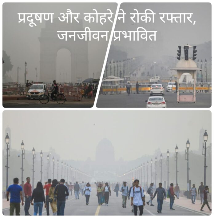प्रदूषण और घने कोहरे के मिश्रण ने दिल्ली, नोएडा और गाजियाबाद में दृश्यता को बेहद कम कर दिया है। अक्षरधाम मंदिर, इंडिया गेट और अन्य प्रमुख स्थानों पर धुंध की मोटी परत छाई रही। सीपीसीबी के ‘समीर’ ऐप के आंकड़ों के अनुसार, आनंद विहार में AQI 470, नेहरू नगर में 463, ओखला और मुंडका में 459 तथा सिरीफोर्ट में 450 दर्ज किया गया।