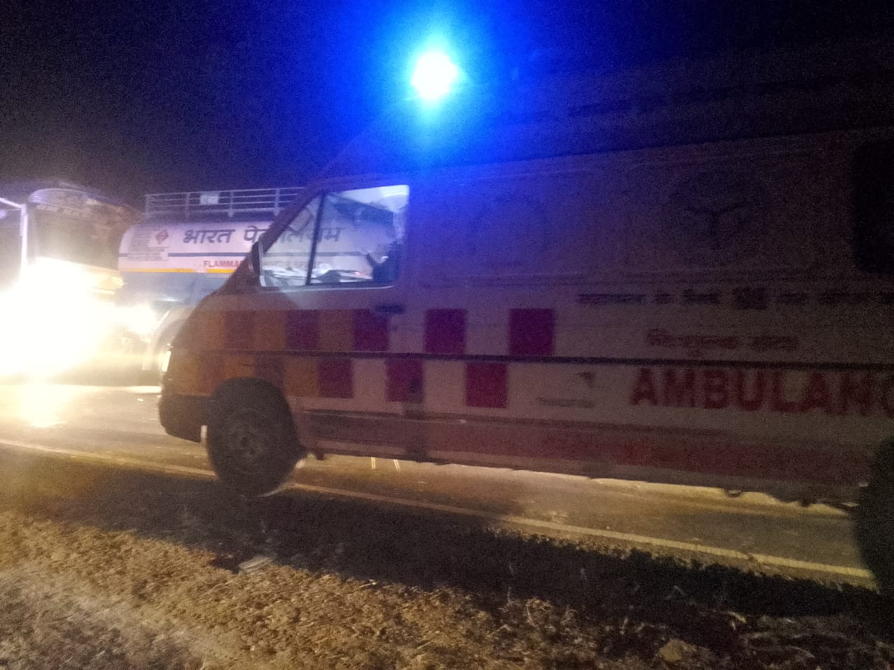 बहराइच (राष्ट्र की परम्परा) बहराइच गोंडा राष्ट्रीय मार्ग पर शाम करीब 7:00 बजे बहराइच की तरफ से भूसा लादकर गोंडा की तरफ जा रहा ट्रैक्टर ट्राली झाला गांव के सामने बीच मार्ग पर पलट गया काफी व्यस्त मार्ग होने के कारण दोनों तरफ से लंबी कतार वाहनों की लग गई इस बीच मरीज उठाने जा रही एम्बुलेंस जाम में फंस गई सूचना पाकर स्थानीय थाना पयागपुर के प्रभारी निरीक्षक करुणाकर पांडे दलबल के साथ घटनास्थल पहुंचकर जाम हटवाया तब जाकर दोनों तरफ वाहनों की लगी लंबी कतार समाप्त हो सका घटना के बाद ट्रैक्टर चालक अपना वाहन छोड़कर फरार हो गया था