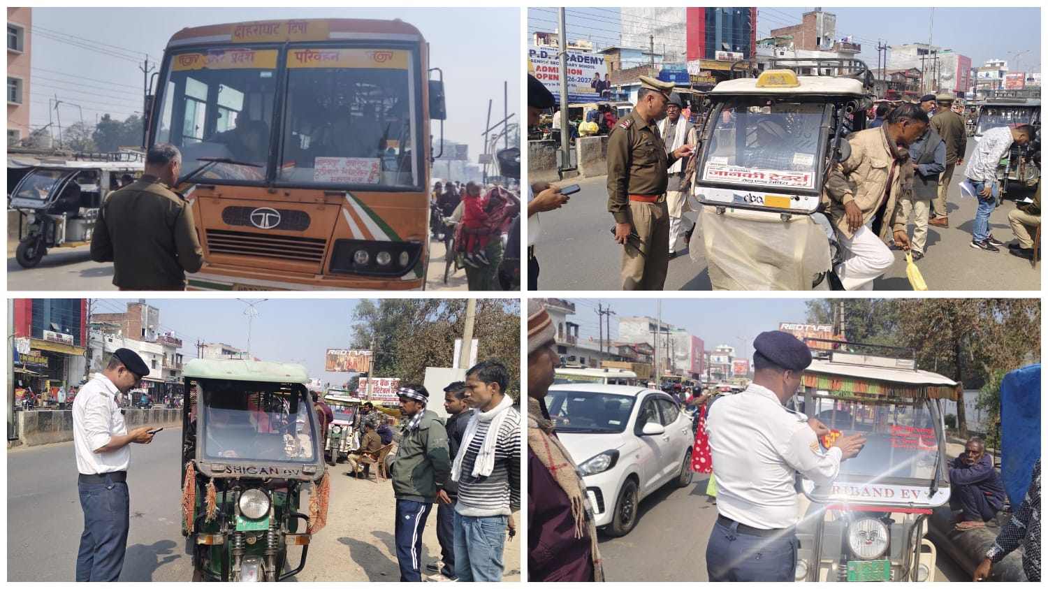 देवरिया(राष्ट्र की परम्परा)।जनपद देवरिया में बढ़ती सड़क दुर्घटनाओं पर प्रभावी नियंत्रण लगाने के उद्देश्य से यातायात पुलिस द्वारा व्यापक चेकिंग अभियान चलाया गया। पुलिस अधीक्षक देवरिया संजीव सुमन के निर्देशन में यातायात प्रभारी गुलाब सिंह के नेतृत्व में शहर क्षेत्र के विभिन्न प्रमुख मार्गों पर सघन वाहन जांच की गई।इस अभियान के दौरान कोतवाली क्षेत्र में संचालित ई-रिक्शा वाहनों की विशेष जांच की गई। जिन ई-रिक्शा वाहनों के पास वैध दस्तावेज उपलब्ध थे, उनकी विधिवत नंबरिंग कराई गई, जबकि नियमों का उल्लंघन करने वाले वाहनों के विरुद्ध मोटर वाहन अधिनियम के तहत कड़ी कार्रवाई की गई।यातायात पुलिस की टीम ने गोरखपुर ओवरब्रिज, कसया ओवरब्रिज, मालवीय रोड एवं बस स्टैंड जैसे अत्यधिक भीड़भाड़ वाले क्षेत्रों में सड़क पर वाहन खड़ा कर सवारियां भरने वाले अनुबंधित बस, ऑटो एवं ई-रिक्शा चालकों के खिलाफ चालान एवं सीज की कार्यवाही की। इस कार्रवाई से अव्यवस्थित यातायात और जाम की समस्या को नियंत्रित करने में मदद मिली।अभियान के दौरान कुल 138 वाहनों का ई-चालान किया गया, वहीं 10 वाहनों को सीज कर दिया गया। यातायात पुलिस अधिकारियों ने स्पष्ट किया कि यह अभियान आमजन की सुरक्षा को ध्यान में रखते हुए चलाया जा रहा है और आगे भी नियमित रूप से जारी रहेगा।यातायात पुलिस द्वारा की गई इस कार्रवाई का मुख्य उद्देश्य वाहन चालकों को यातायात नियमों के प्रति जागरूक करना, सड़क दुर्घटनाओं की संभावनाओं को कम करना तथा यह स्पष्ट संदेश देना है कि नियमों का उल्लंघन करने वालों के खिलाफ सख्त कानूनी कार्रवाई की जाएगी। पुलिस प्रशासन ने आम नागरिकों से अपील की है कि वे यातायात नियमों का पालन करें और सुरक्षित यात्रा सुनिश्चित करें।