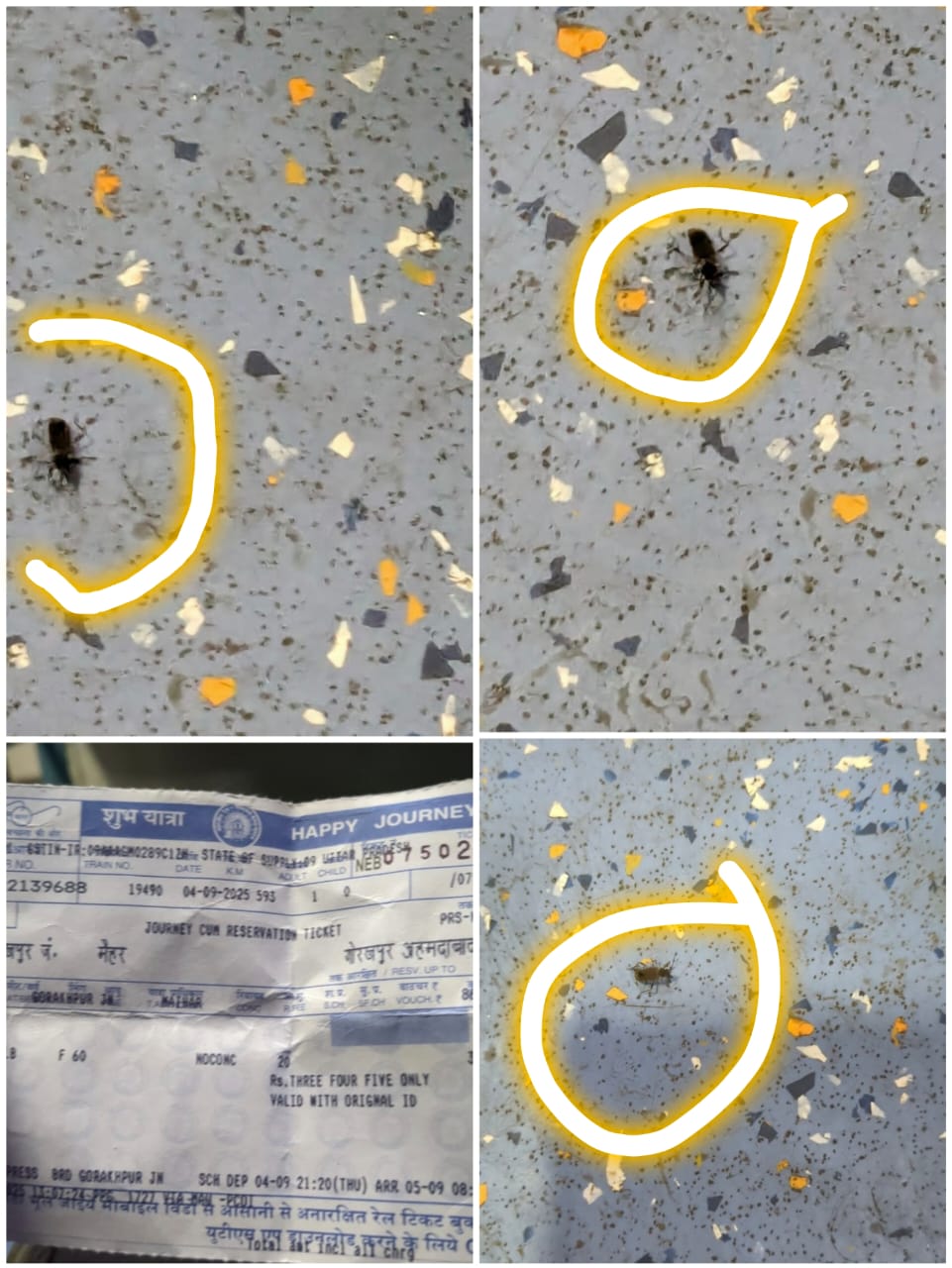 यात्रियों का कहना है कि रेलवे लाख दावे करे, लेकिन स्वच्छता अभियान की पोल ट्रेन के अंदर खुल रही है। डिब्बों की गंदगी और कीड़े-मकोड़े न सिर्फ यात्रा को असुविधाजनक बना रहे हैं, बल्कि यात्रियों की सेहत के लिए भी खतरा बन चुके हैं।